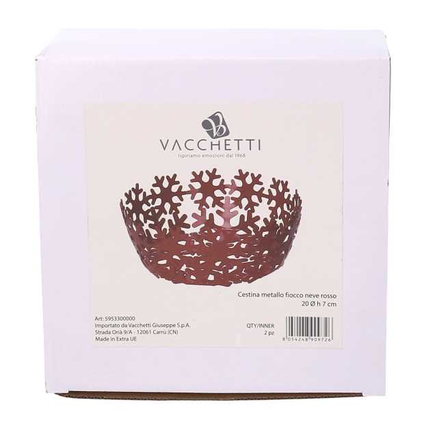 Cestina metallo fiocco neve rosso tondocm ø20h7