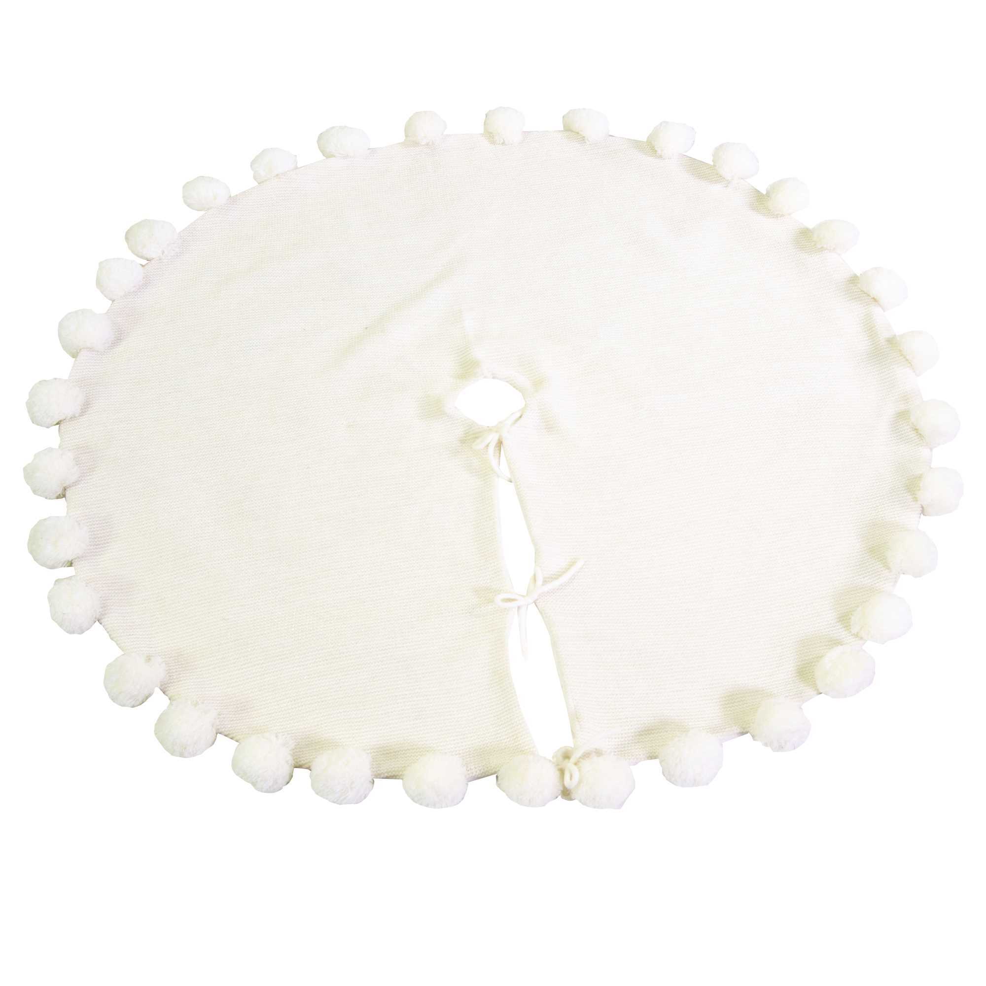 - Copribase albero tessuto maglia e ponpon bianco cm ø100