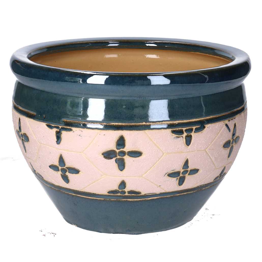 Coprivaso ceramica 3^ blu beige cm ø30h21