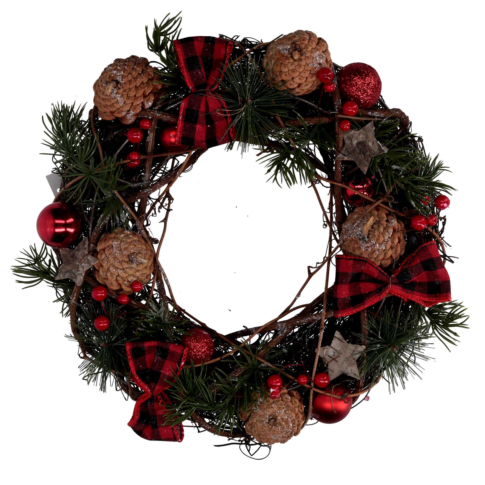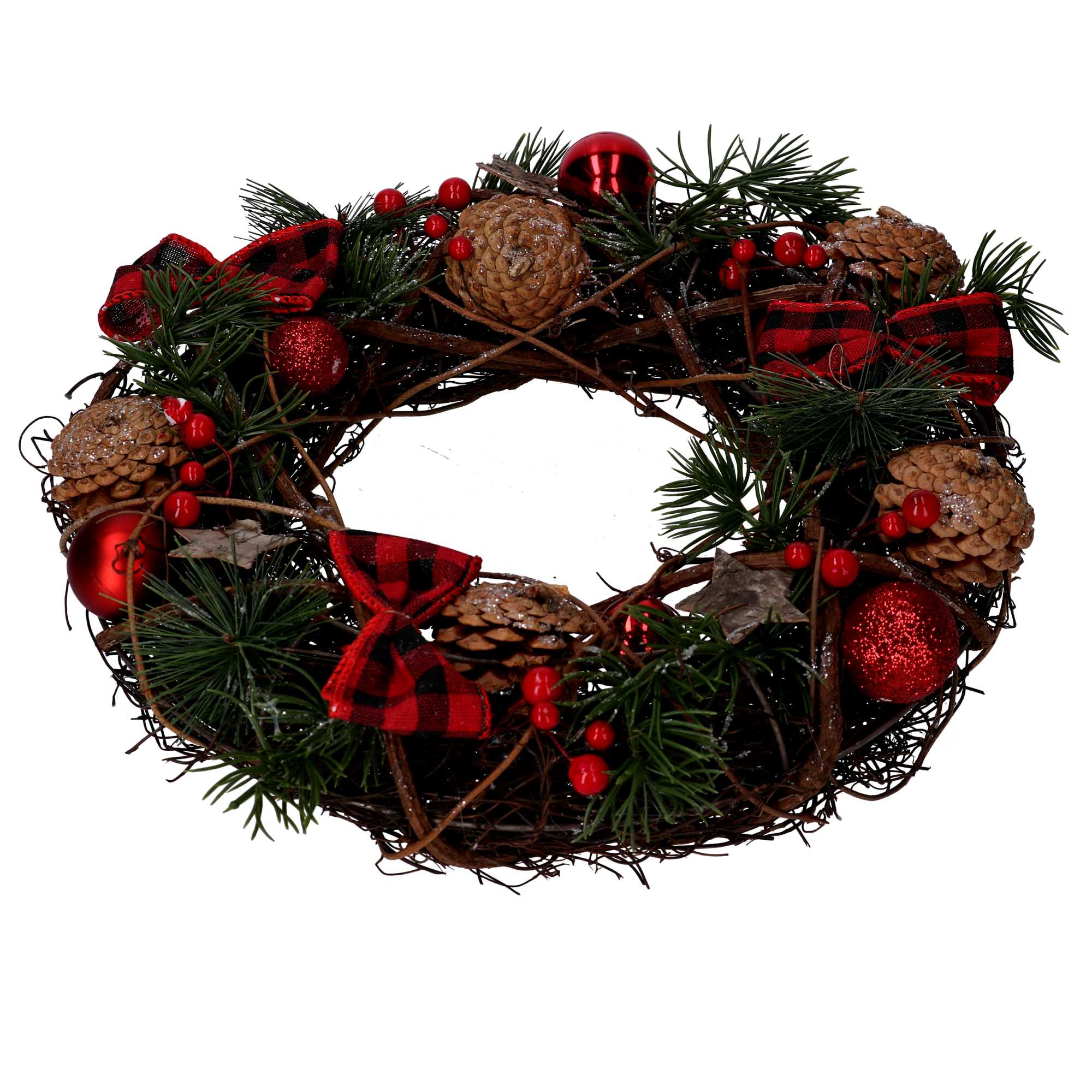 Coroncina con pigne e fiocchi rosso scozzese cm ø34×10