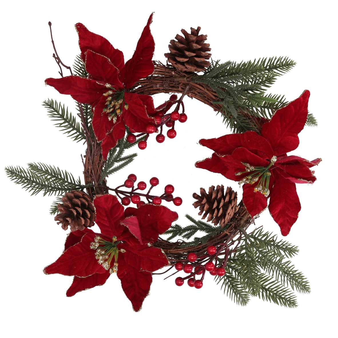 Coroncina fiori pigne rosso oro tondo cmø50×10