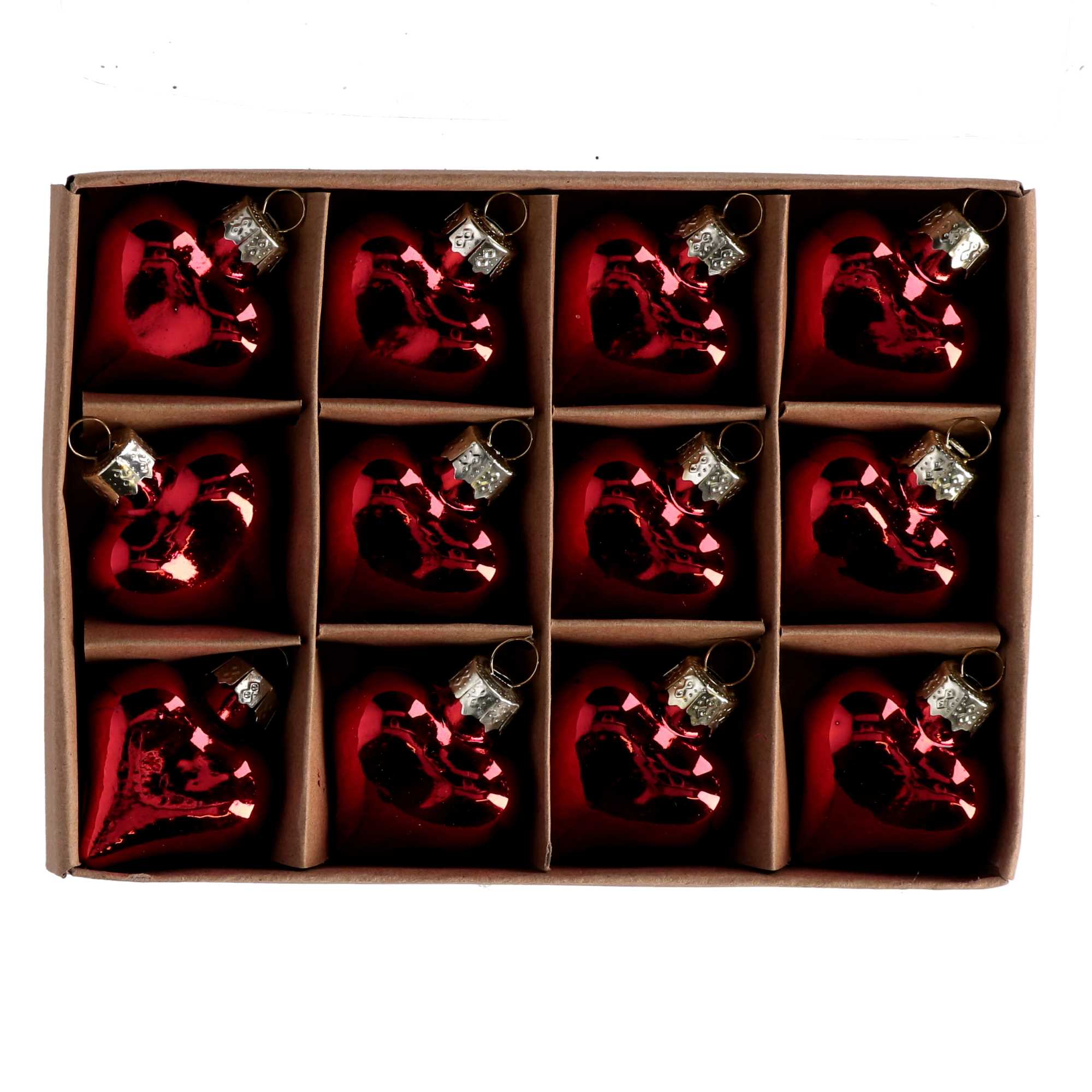 Cuore vetro confezione 12pz rosso cm16x12h2,5. dia4cm
