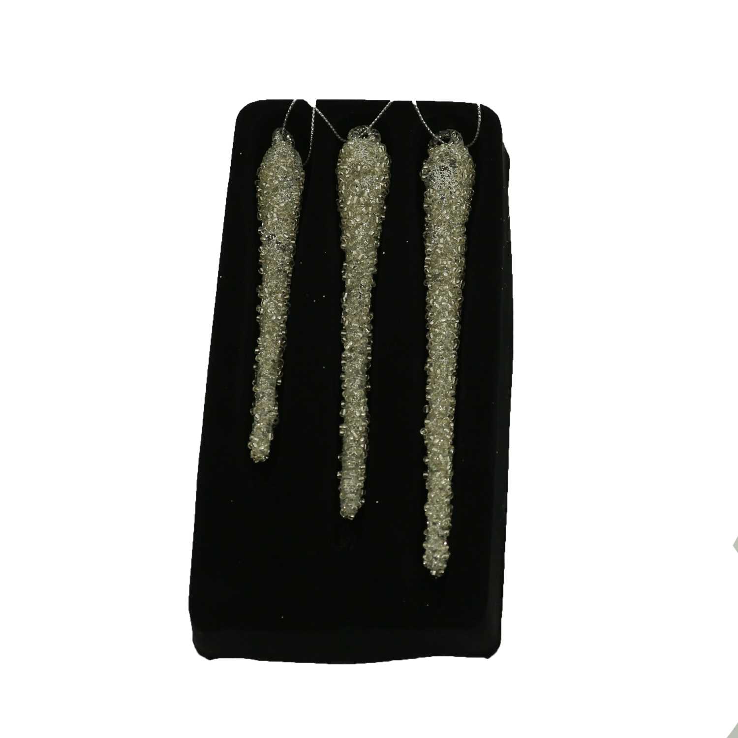 Decorazione vetro ghiaccolo confezione 3pz argento cm20,2×9,5h2,6
