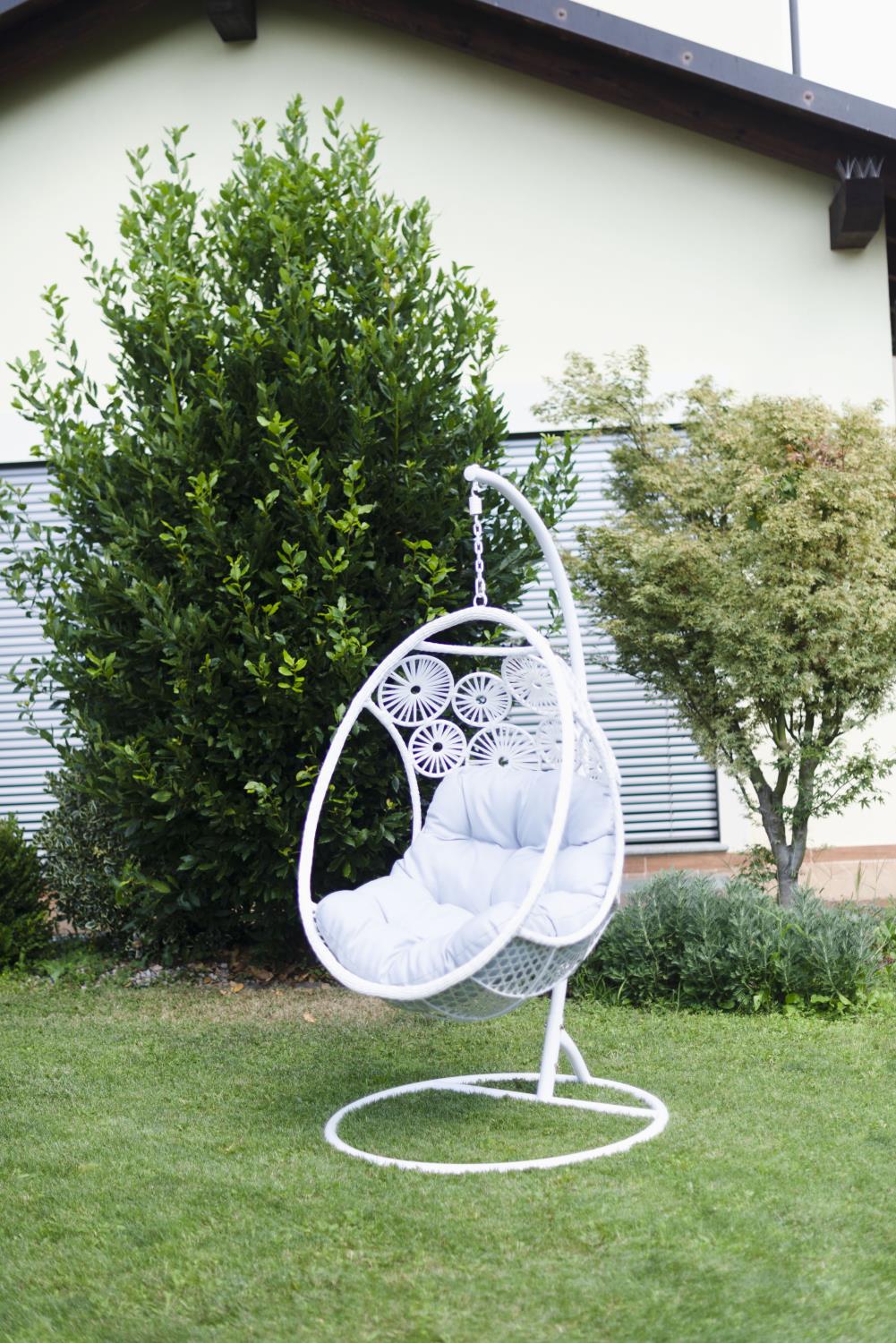 Dondolo pensile Clinton bianco con supporto e cuscino grigio cm116x100h200n