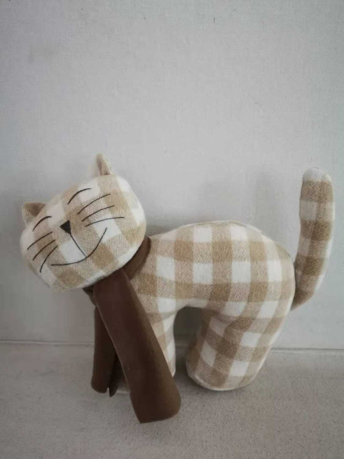 Fermaporta tessuto gatto quadretti crema cm30x6h26