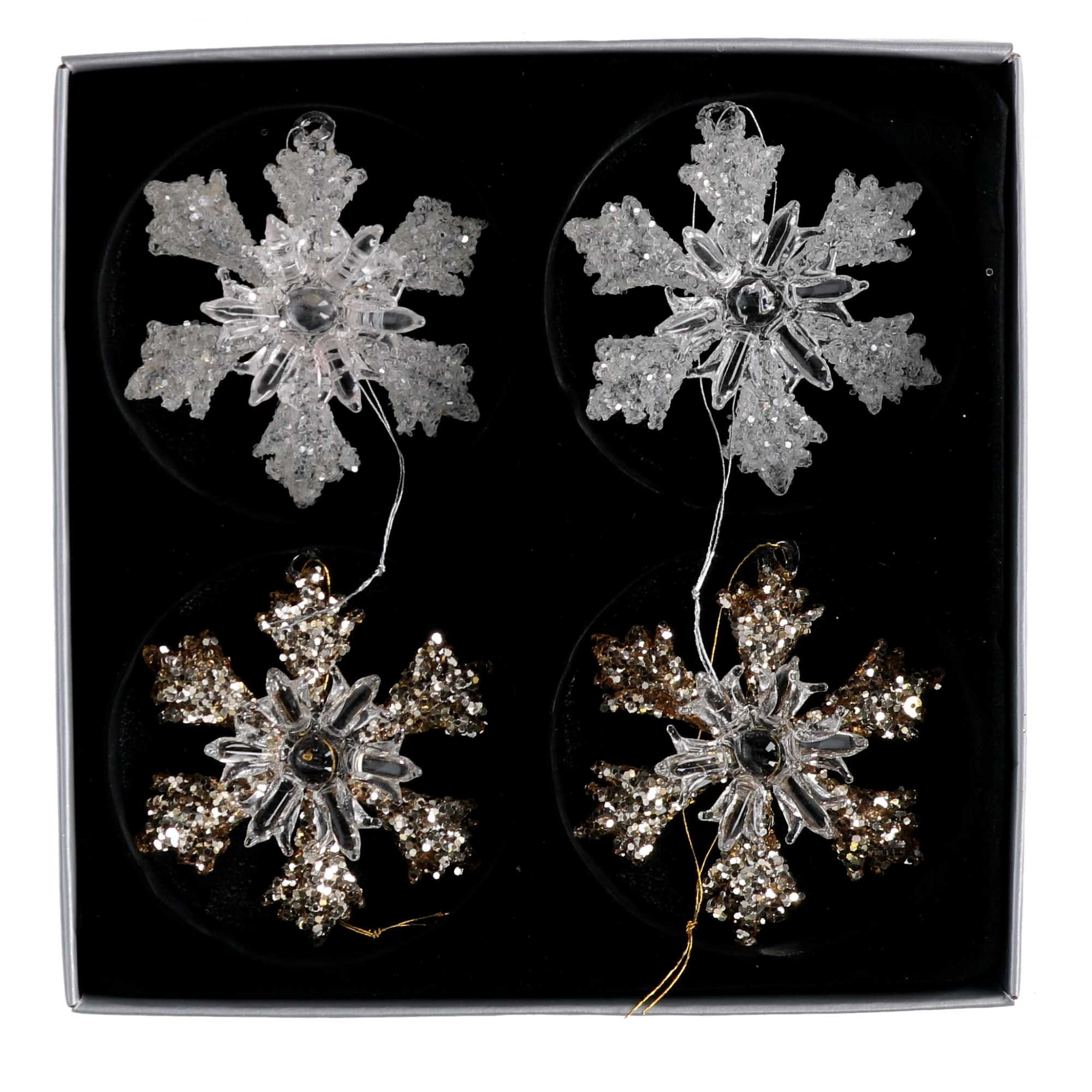 Fiocco di neve vetro confezione 4pz bianco oro cm16x16h2. 6.5X7