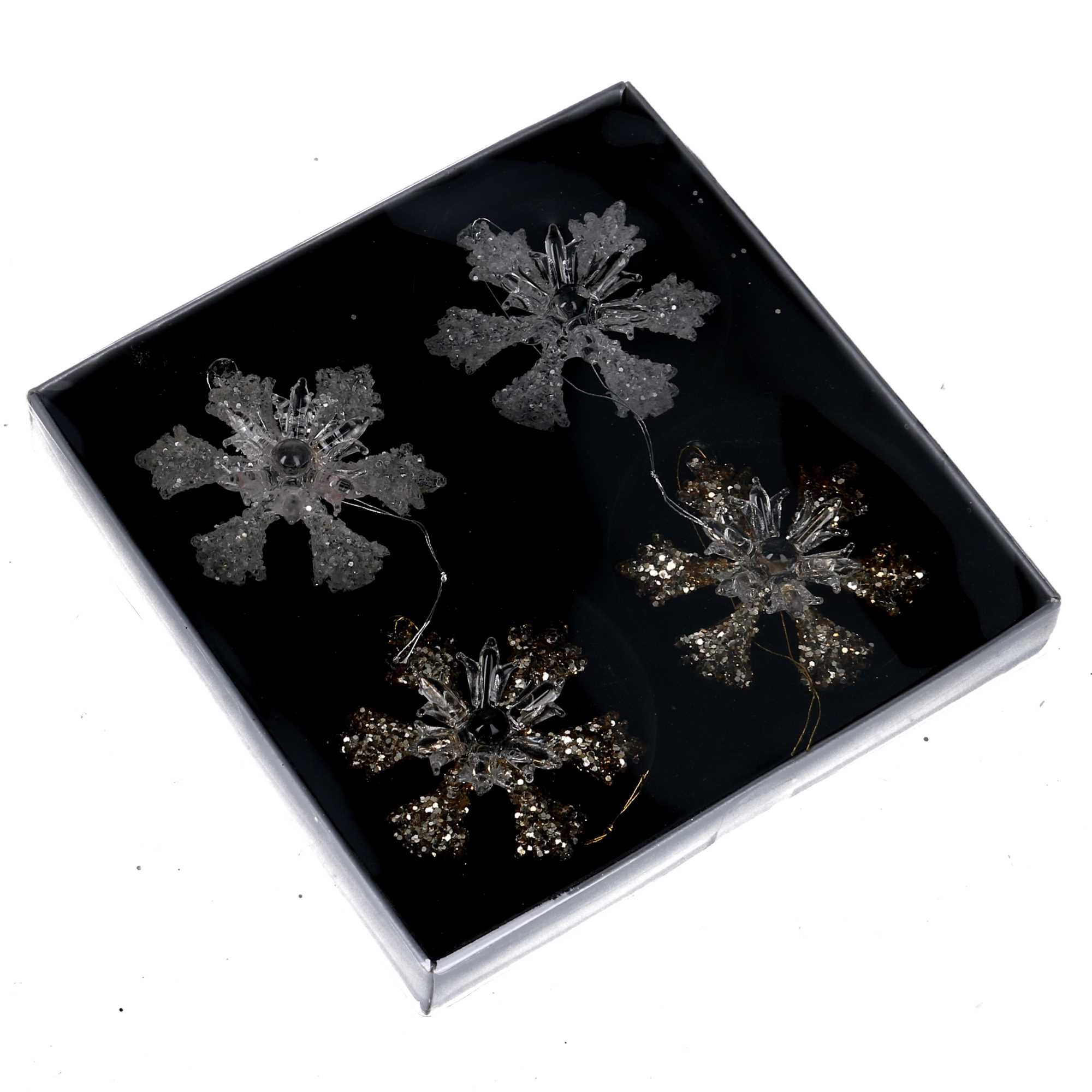 Fiocco di neve vetro confezione 4pz bianco oro cm16x16h2