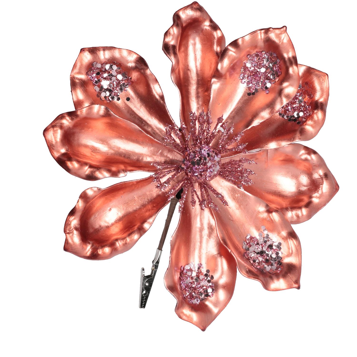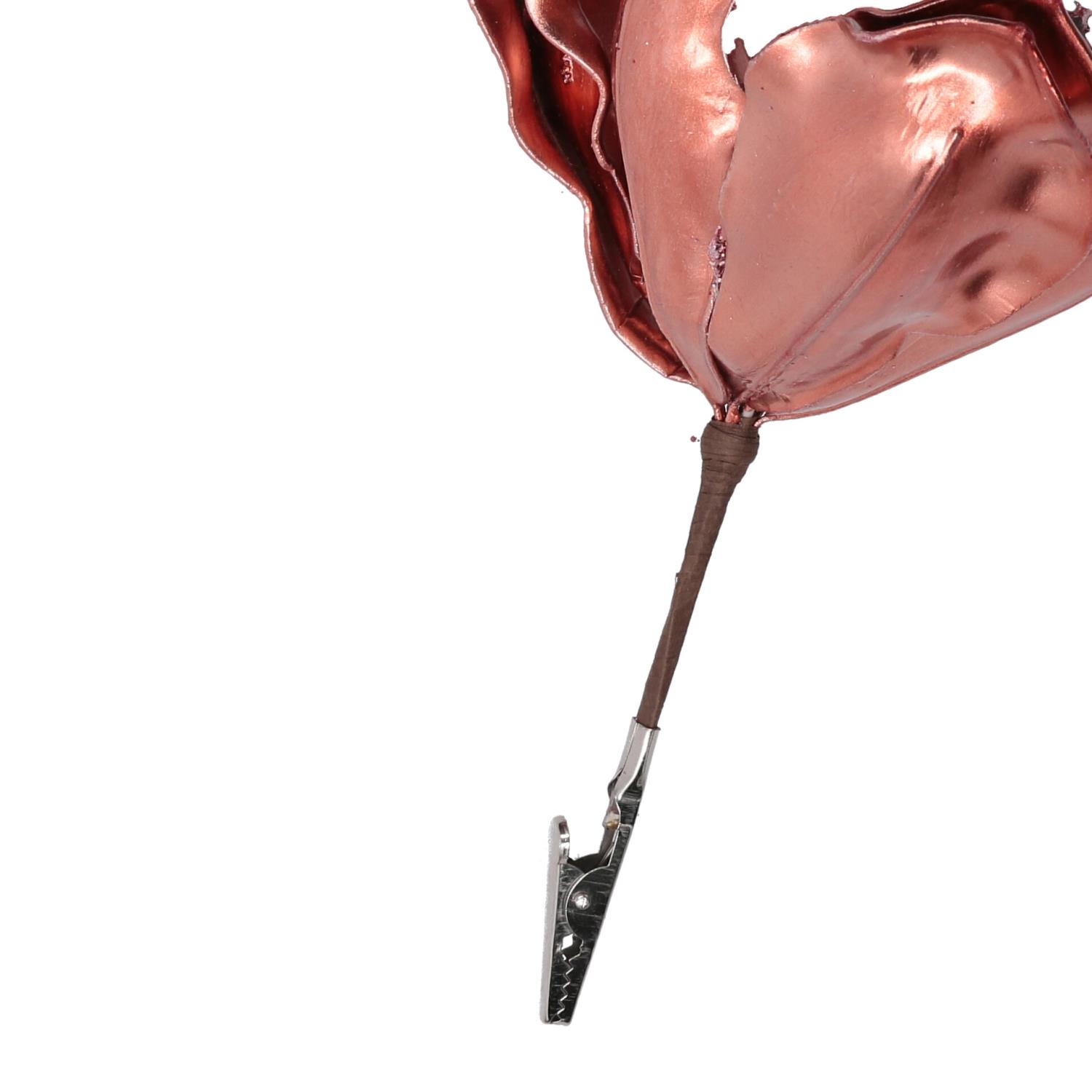 Fiore plastica con clip oro rosa cm h15