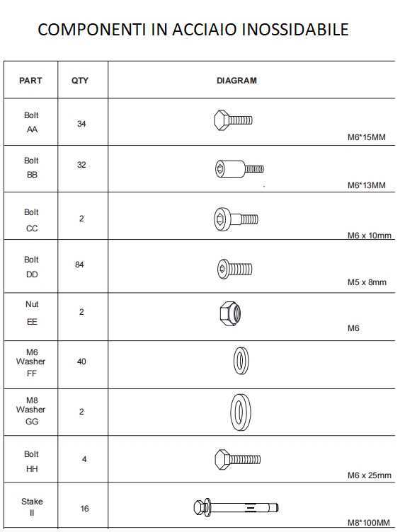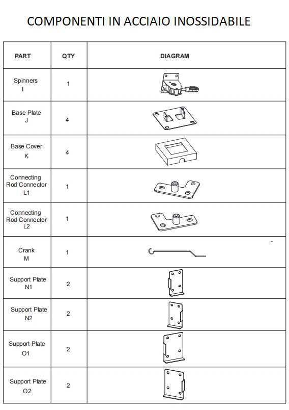 Viteria e alcuni componenti in acciaio inossidabile, fare riferimento a schema allegato per maggiori dettagli.