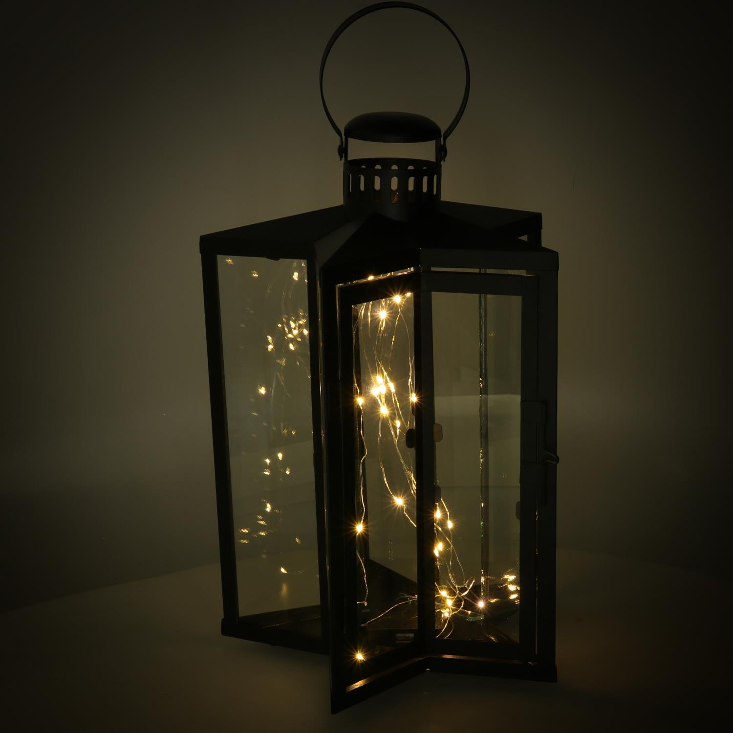 Lanterna led metallo stella nero cm27,5×27,5h42/48