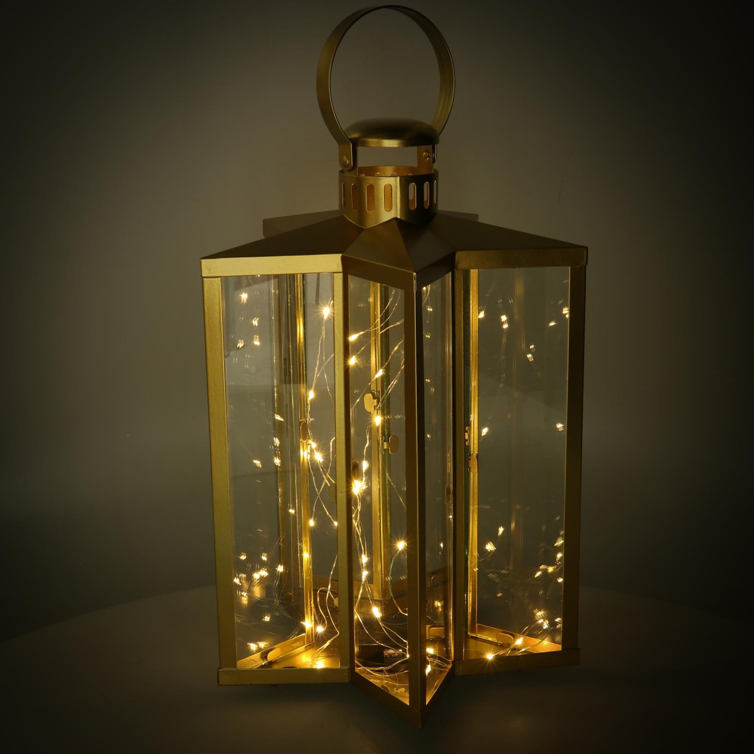Lanterna led metallo stella oro cm27,5×27,5h42/48
