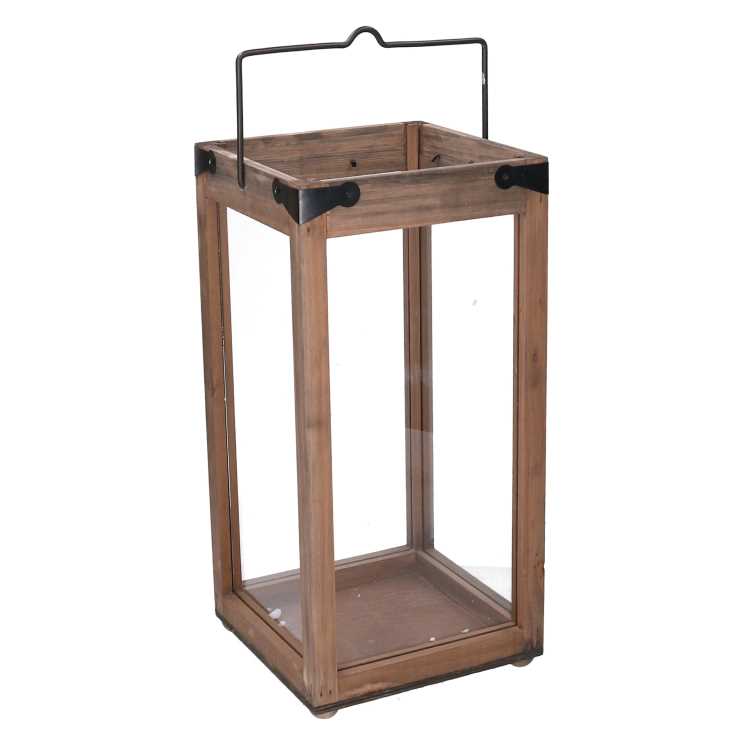 Lanterna legno 1^ naturale quadro cm20x20h40 (con manico h48)
