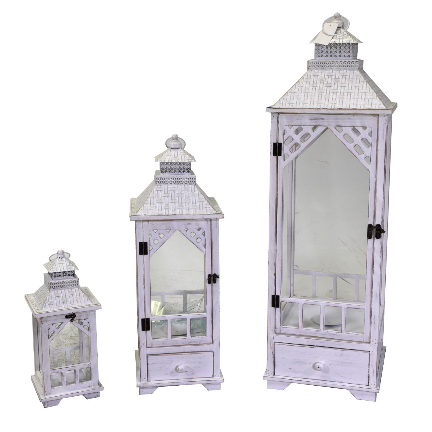 • Lanterna legno metallo 3^ sbiancato quadro cm32x32h101