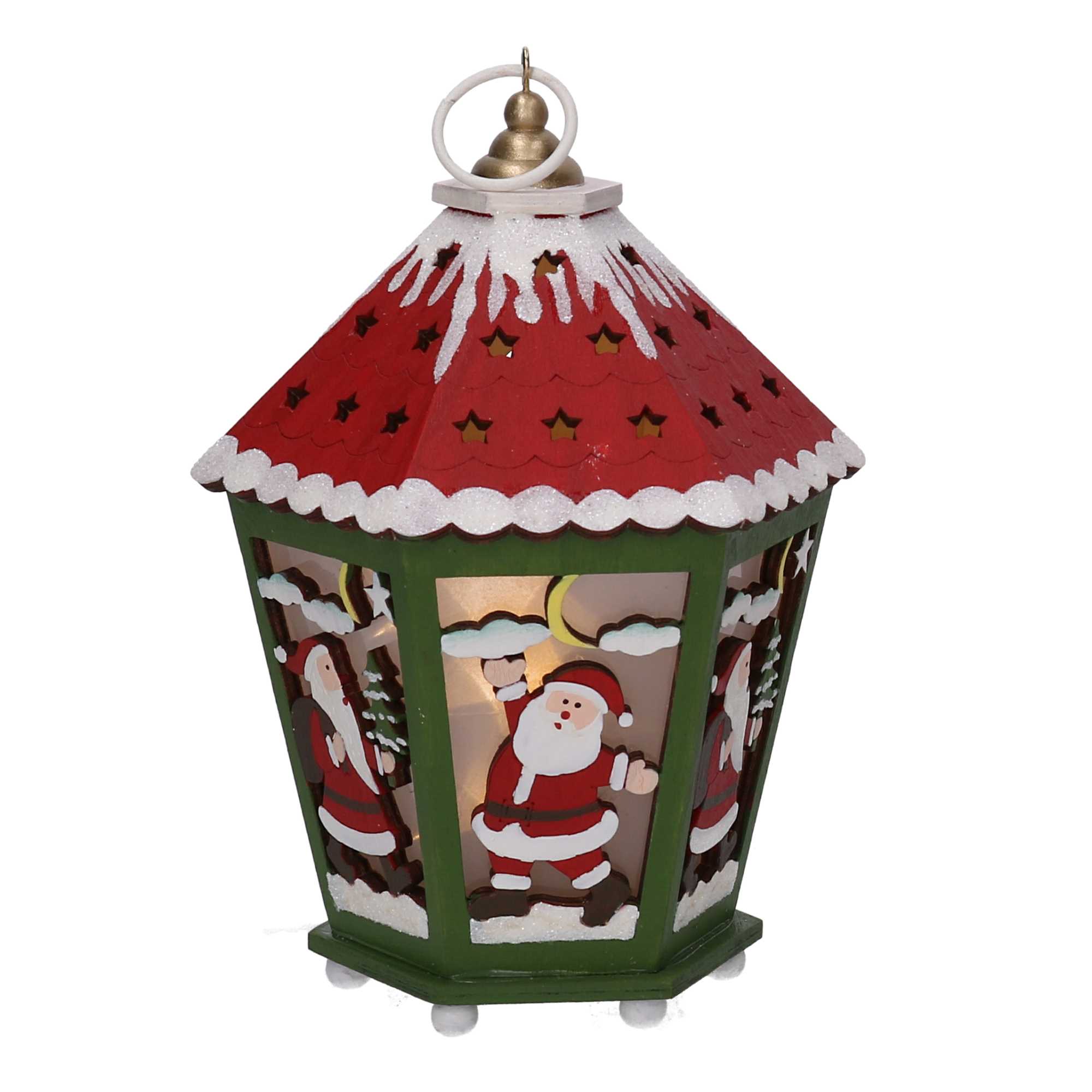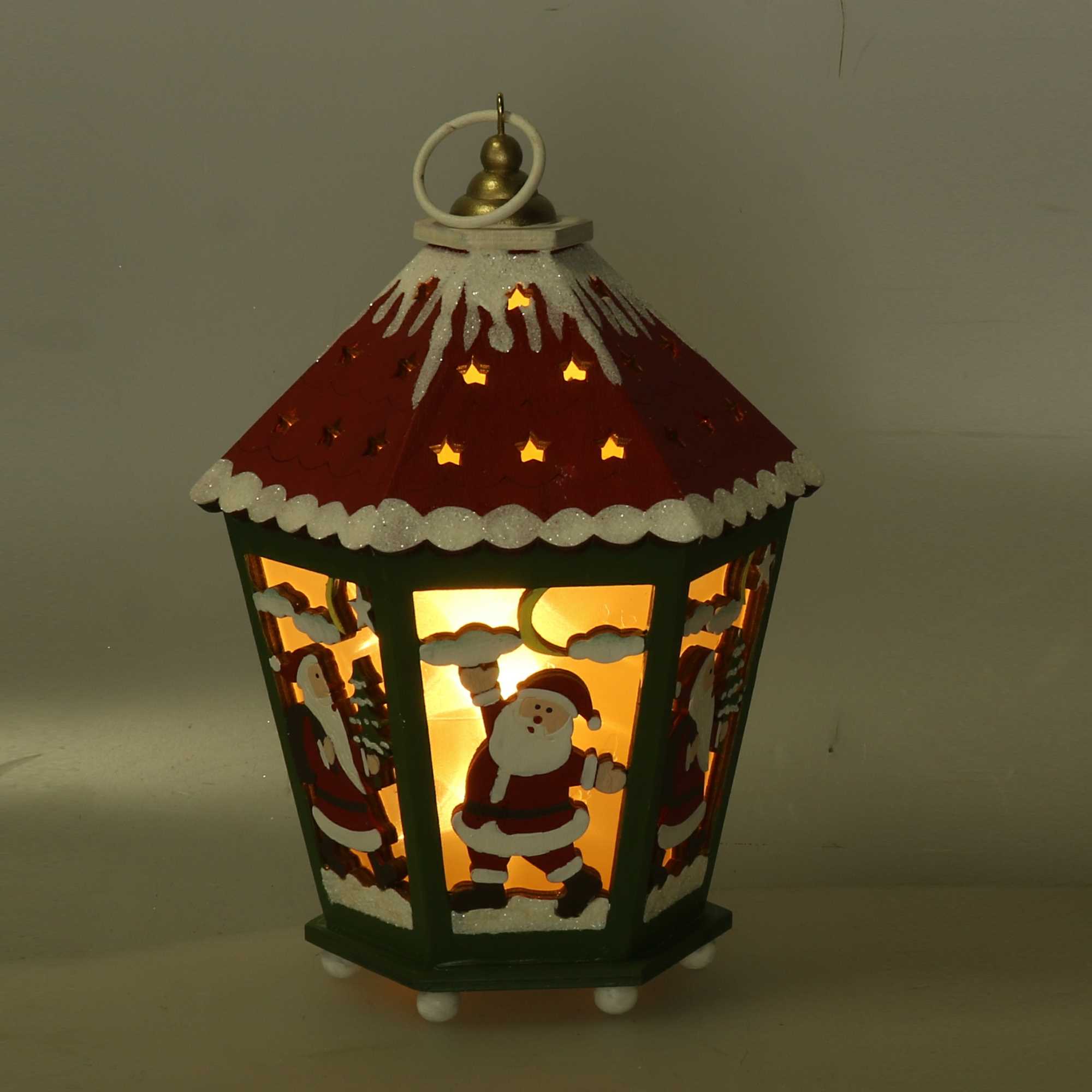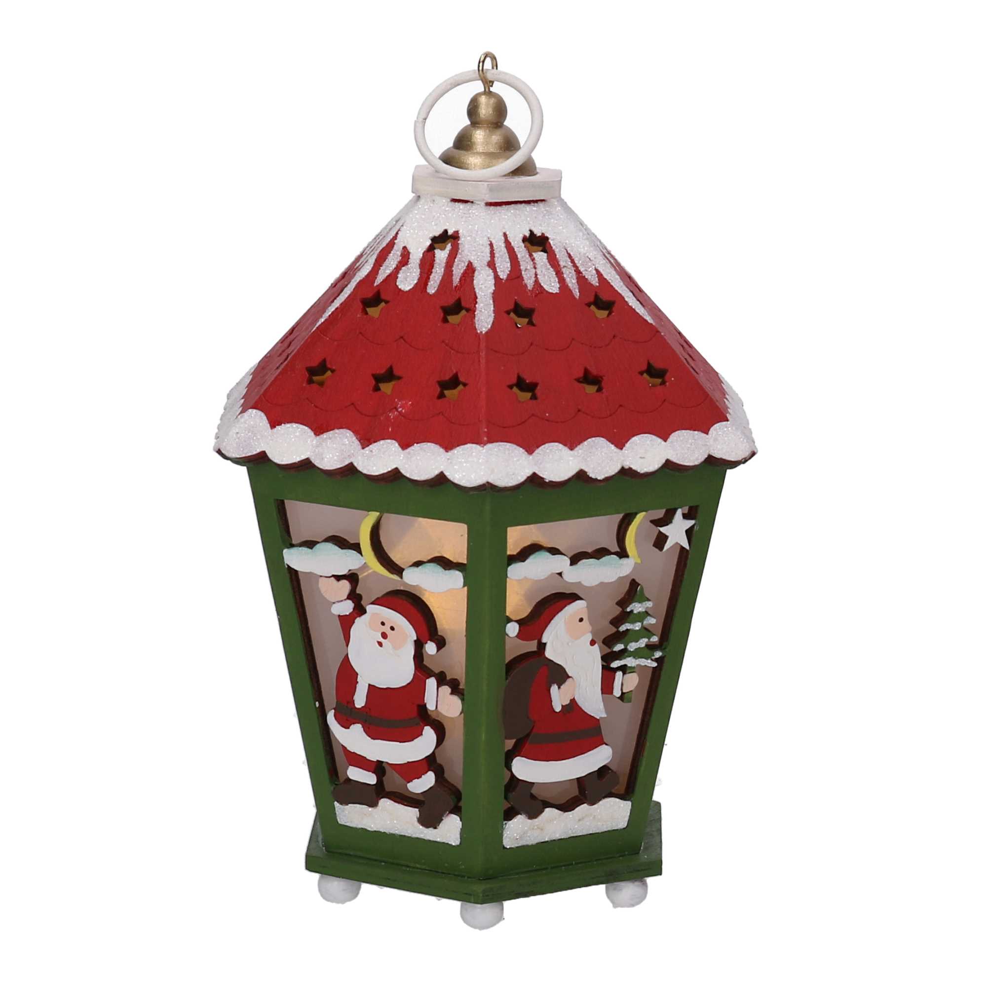 Lanterna legno verde e rosso con led cm15x15h20,5n