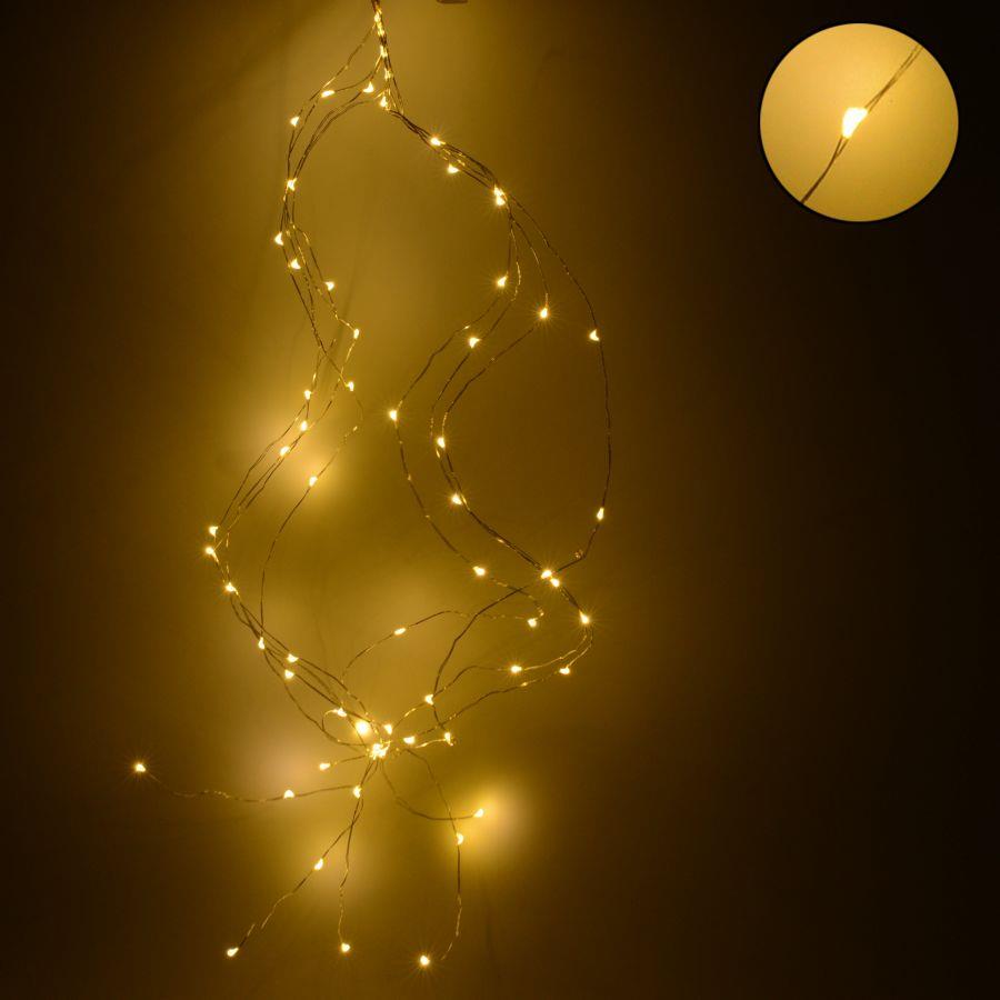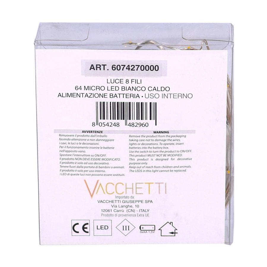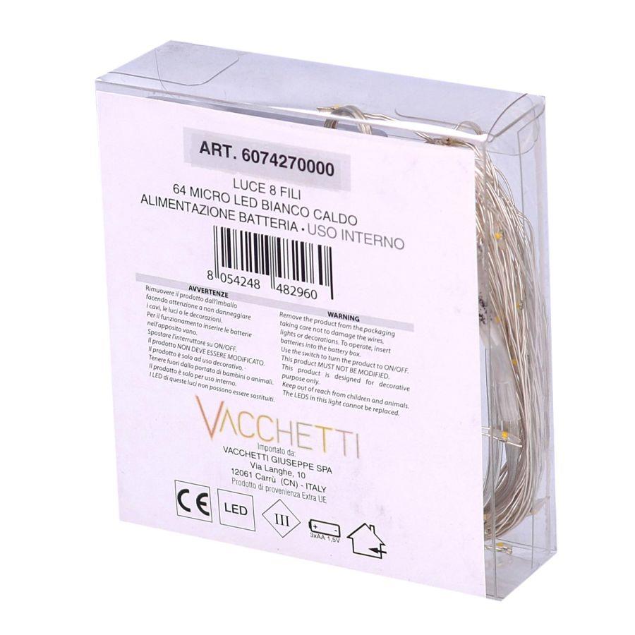 Luce cascata 8 fili 64 micro led biancocaldo cm1x1x80 alimentazione batterian