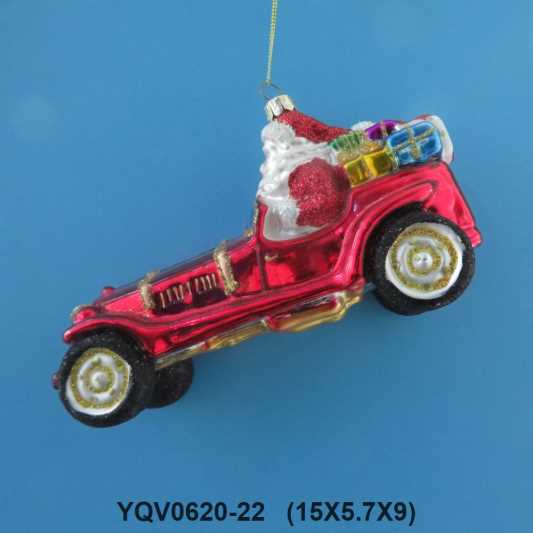 Macchina vetro con babbo natale rosso cm15x5,7h9