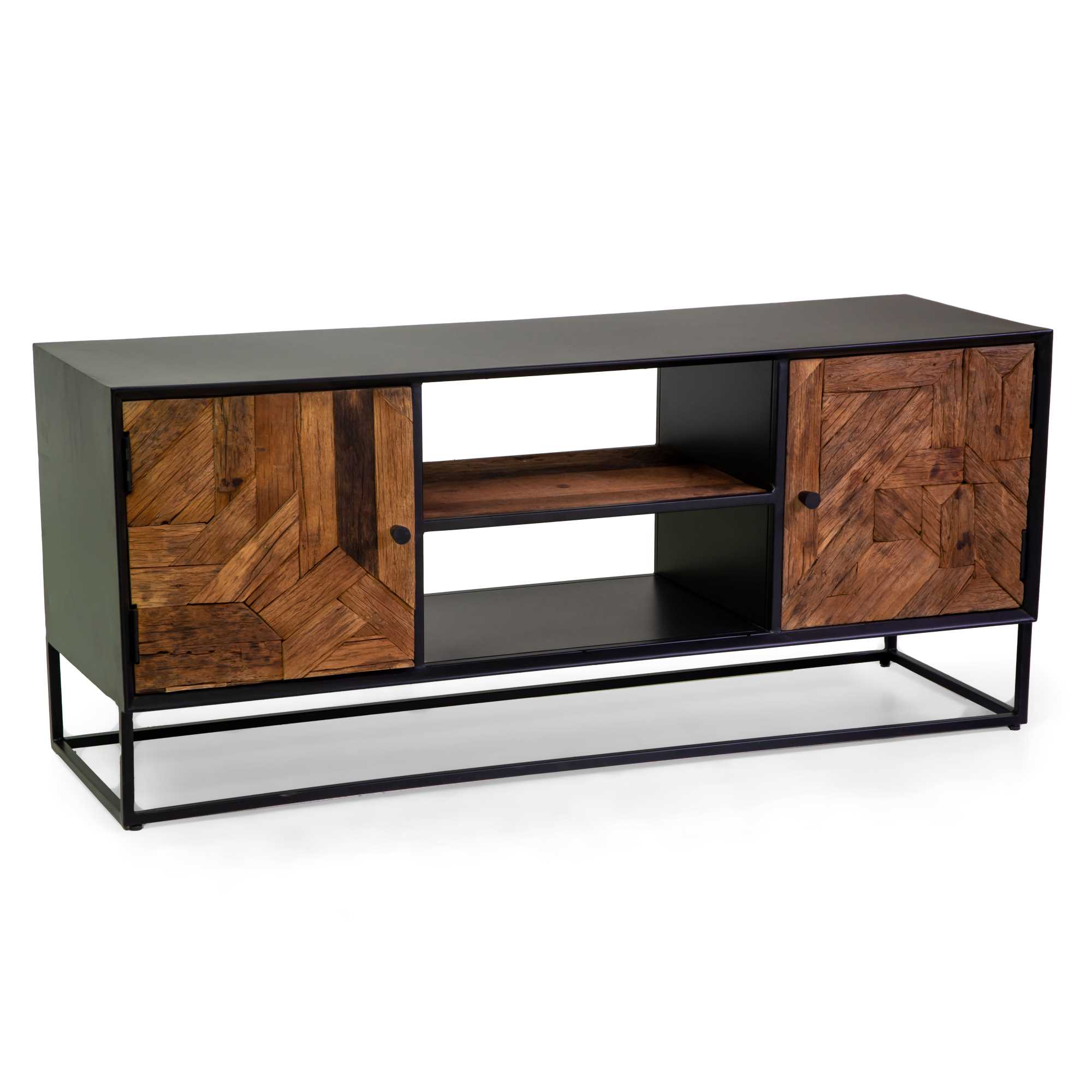 Mobile legno Jaipur naturale top nero cm130x40h55