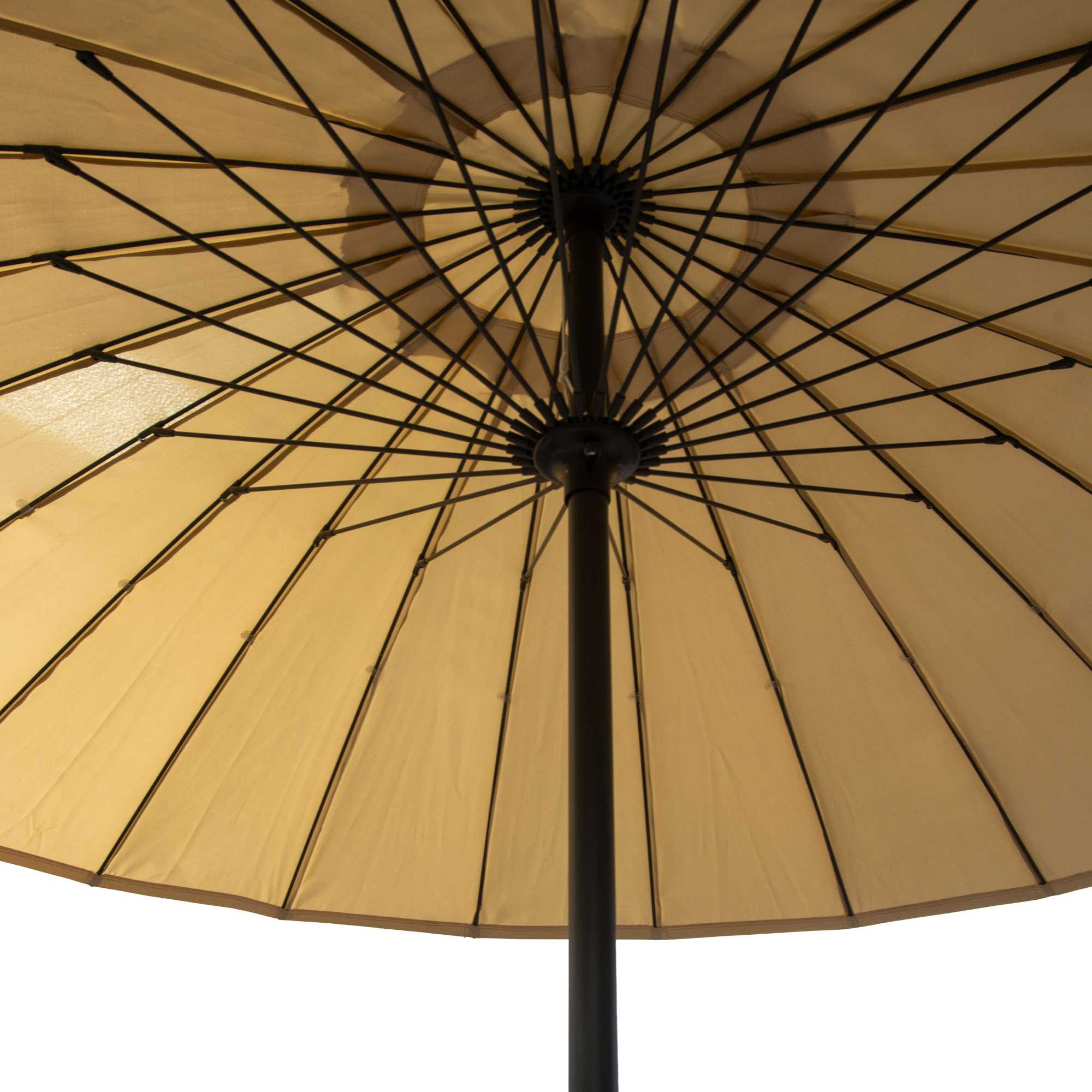 • Le bacchette dell’ombrellone da chiuso arrivano a metà maniglia, nel caso si voglia inserire l’ombrellone in un tavolo h75 con foro per ombrelloni non creano alcun fastidio. (altezza delle bacchette chiuse: 106cm)