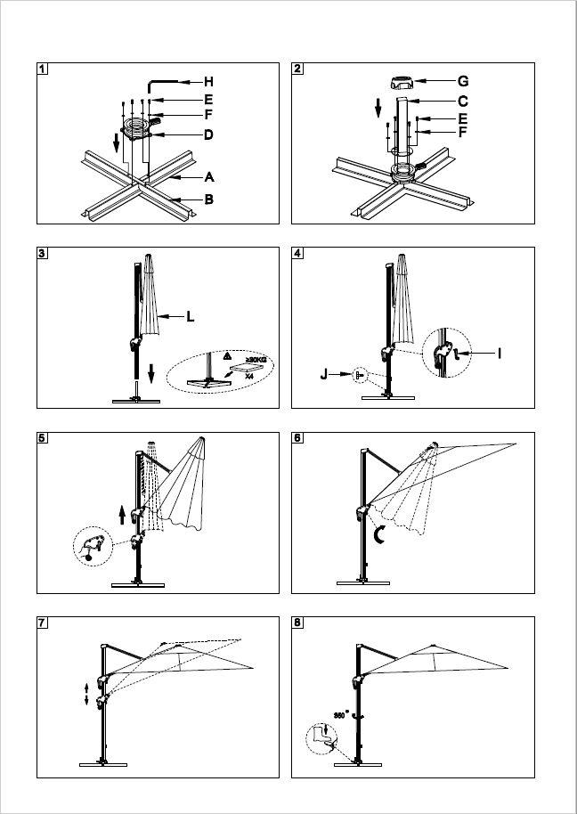 Ombrellone alluminio montana 4x4h2,95m grigio palo lateralen