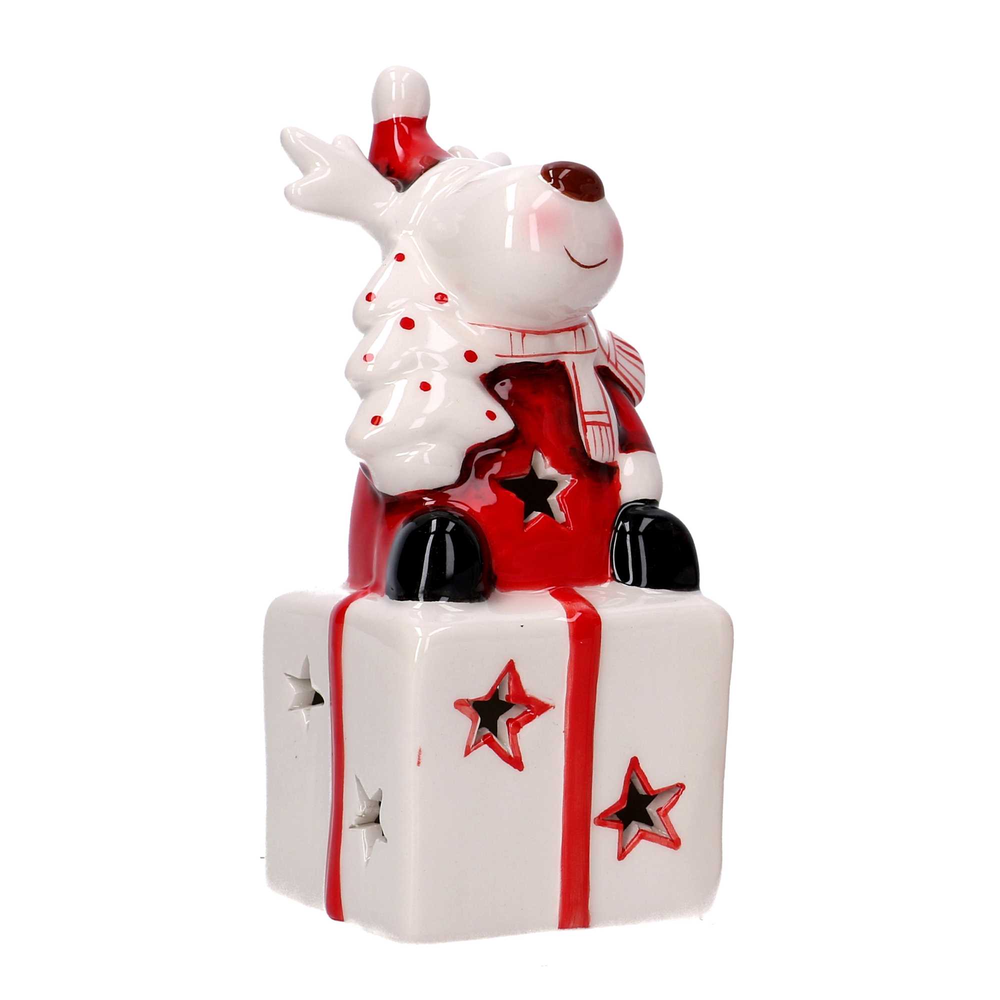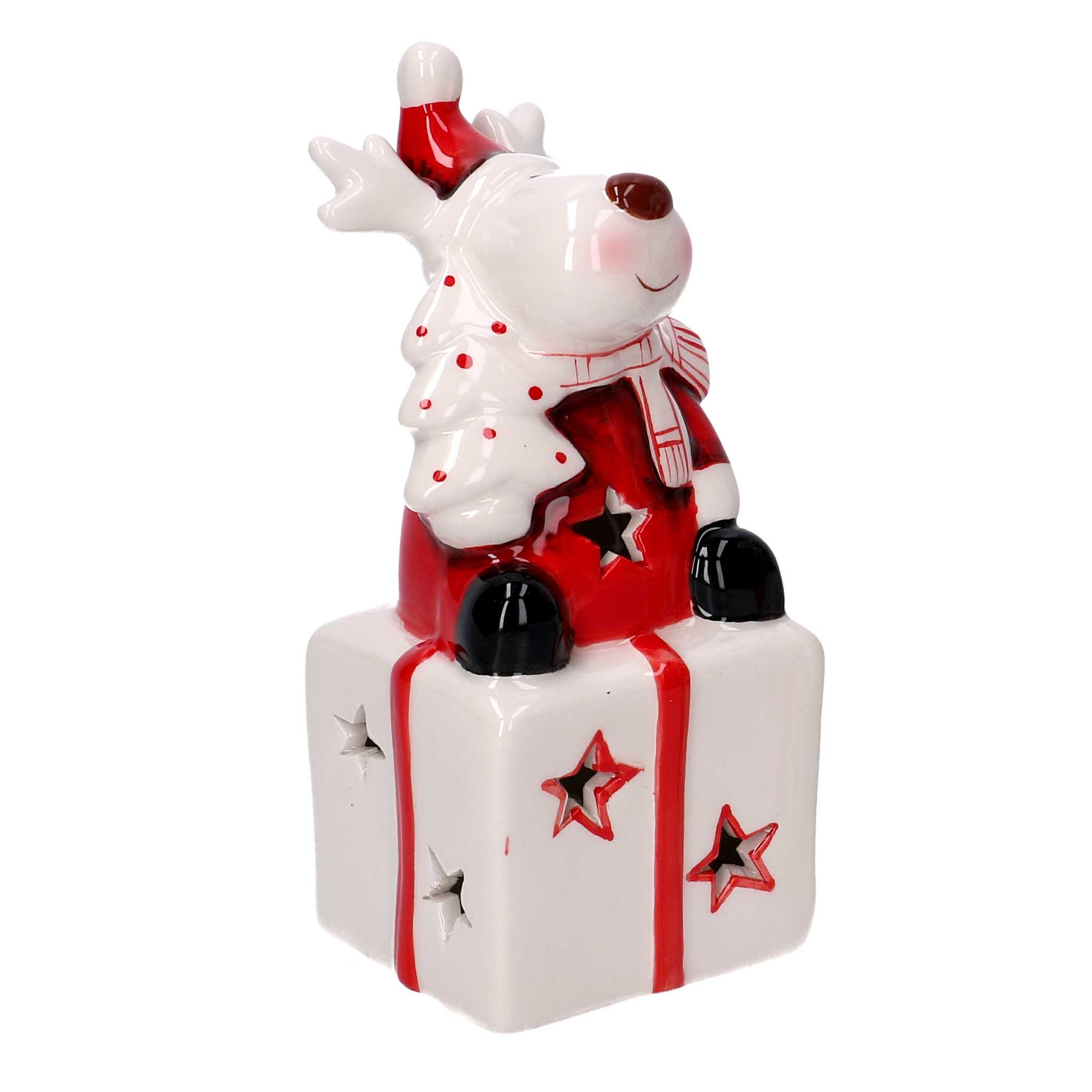Pacco regalo ceramica bianco e rosso renna con led cm7x6,5h14n