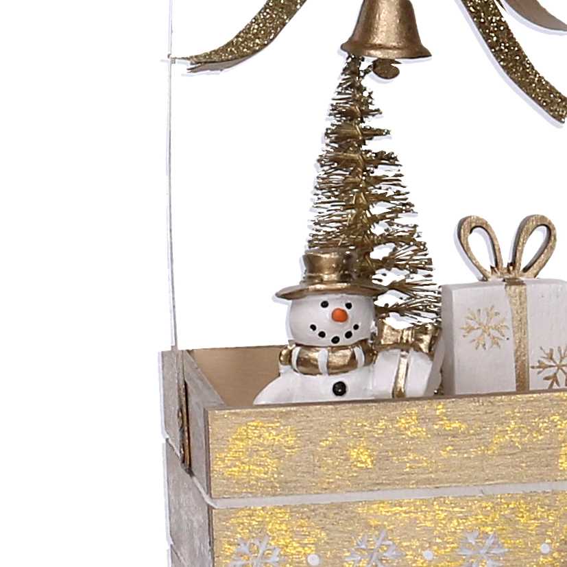 Pacco regalo legno con pupazzo di neve oro cm6,5×6,5h12,5
