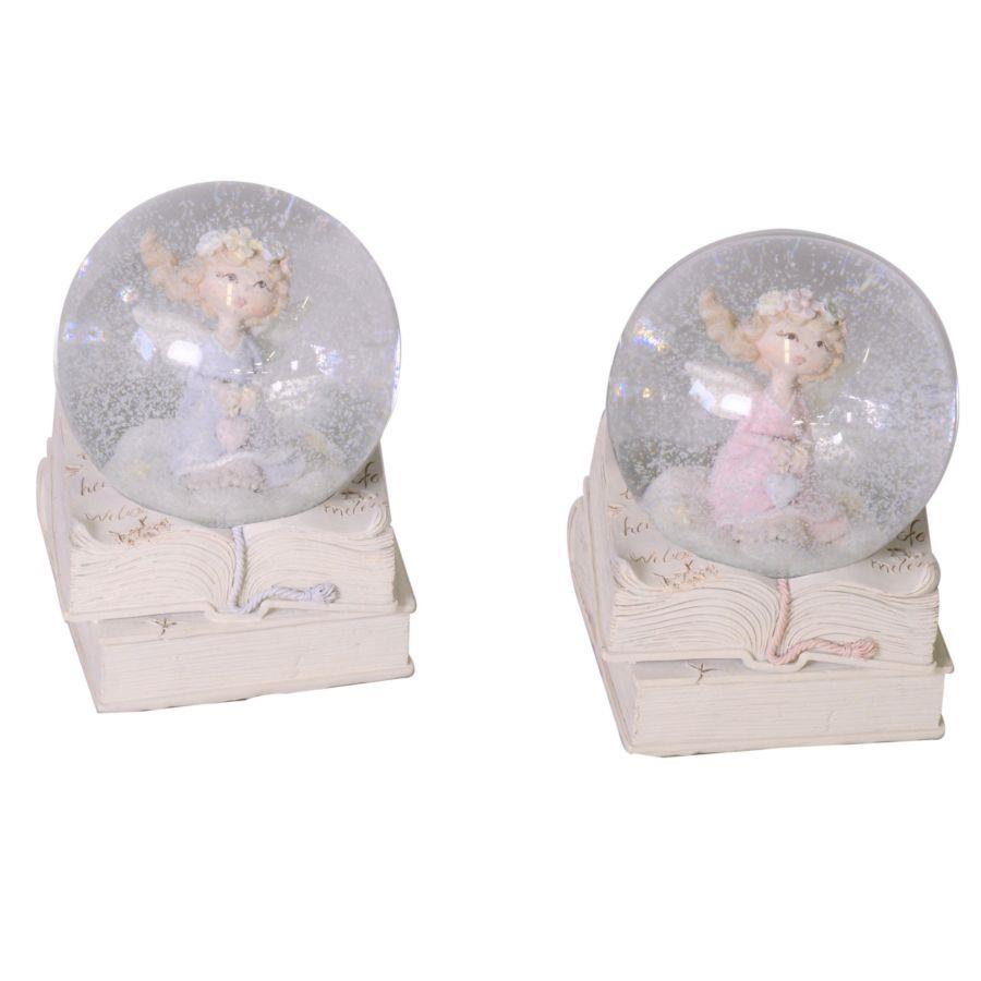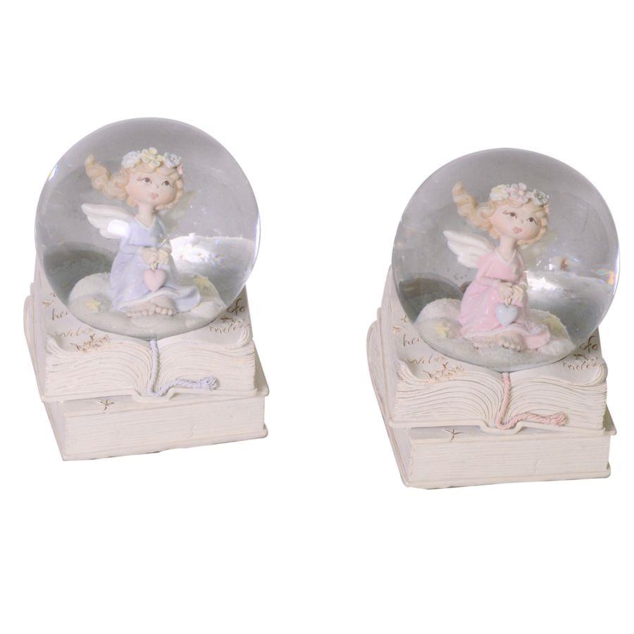 Palla di vetro libro angelo 2 ass. con carillon cm10,5x10h14,5