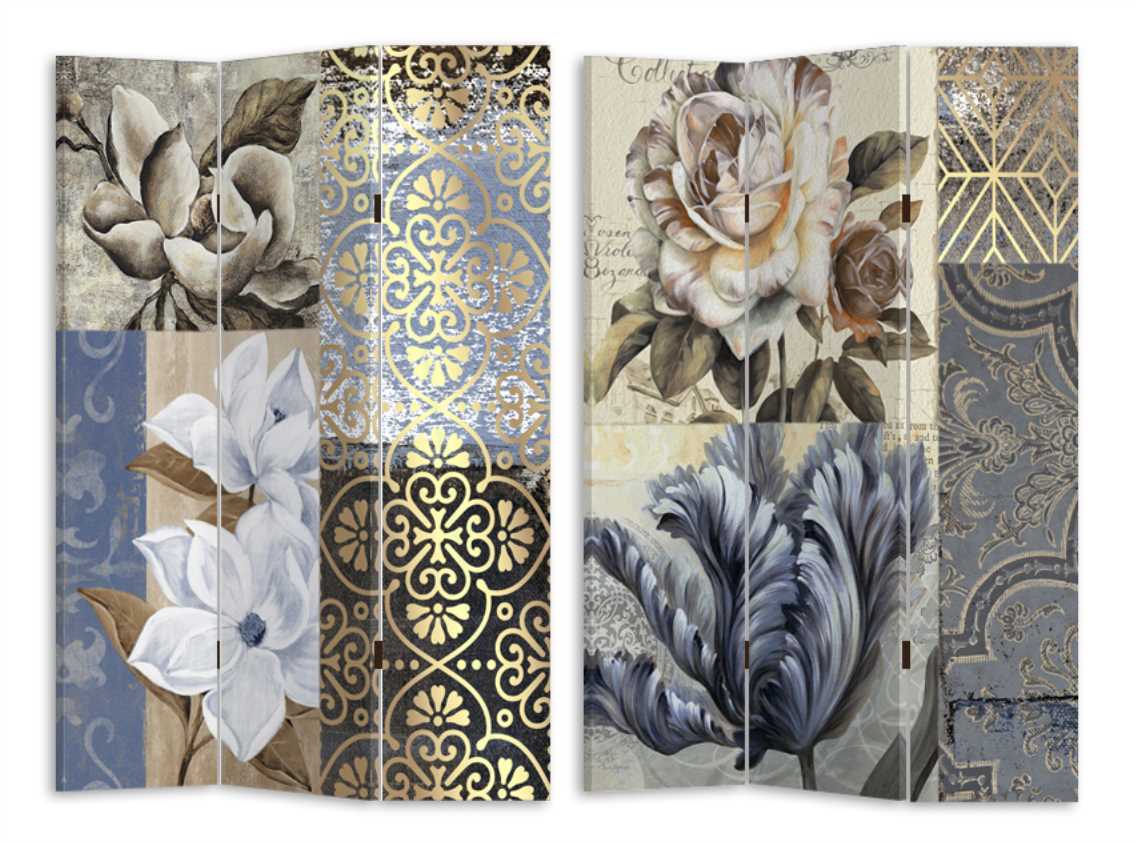 Paravento stampa fiori blu tre ante cm120,6×2,5h180