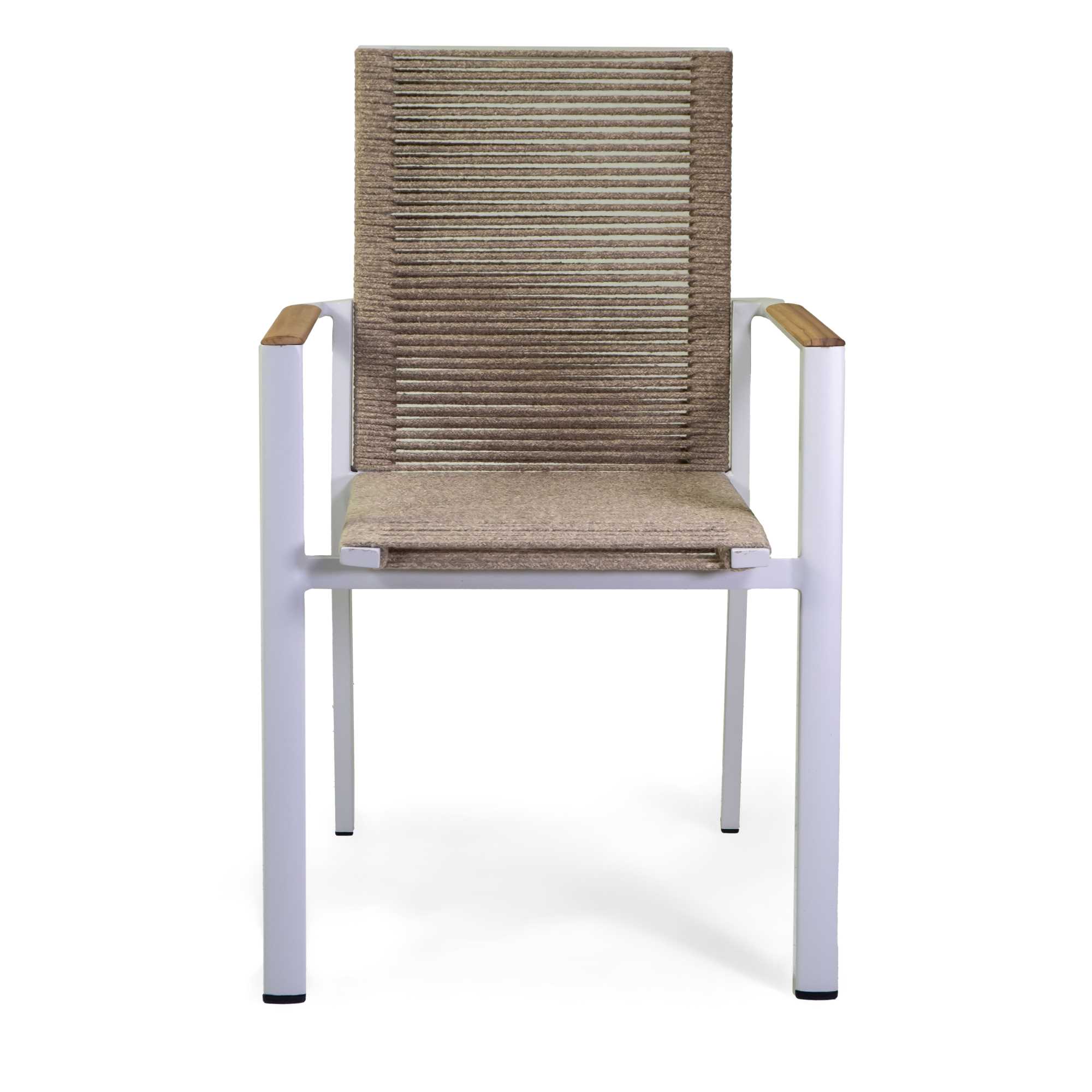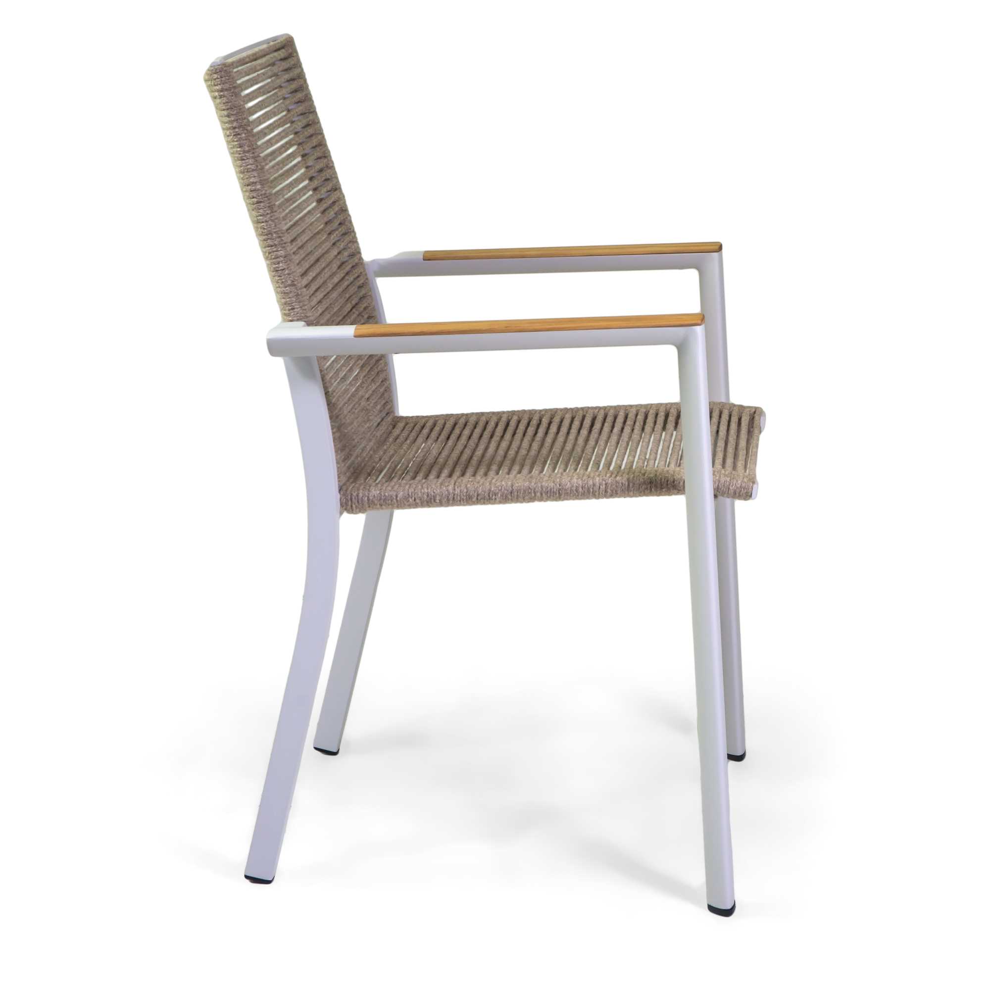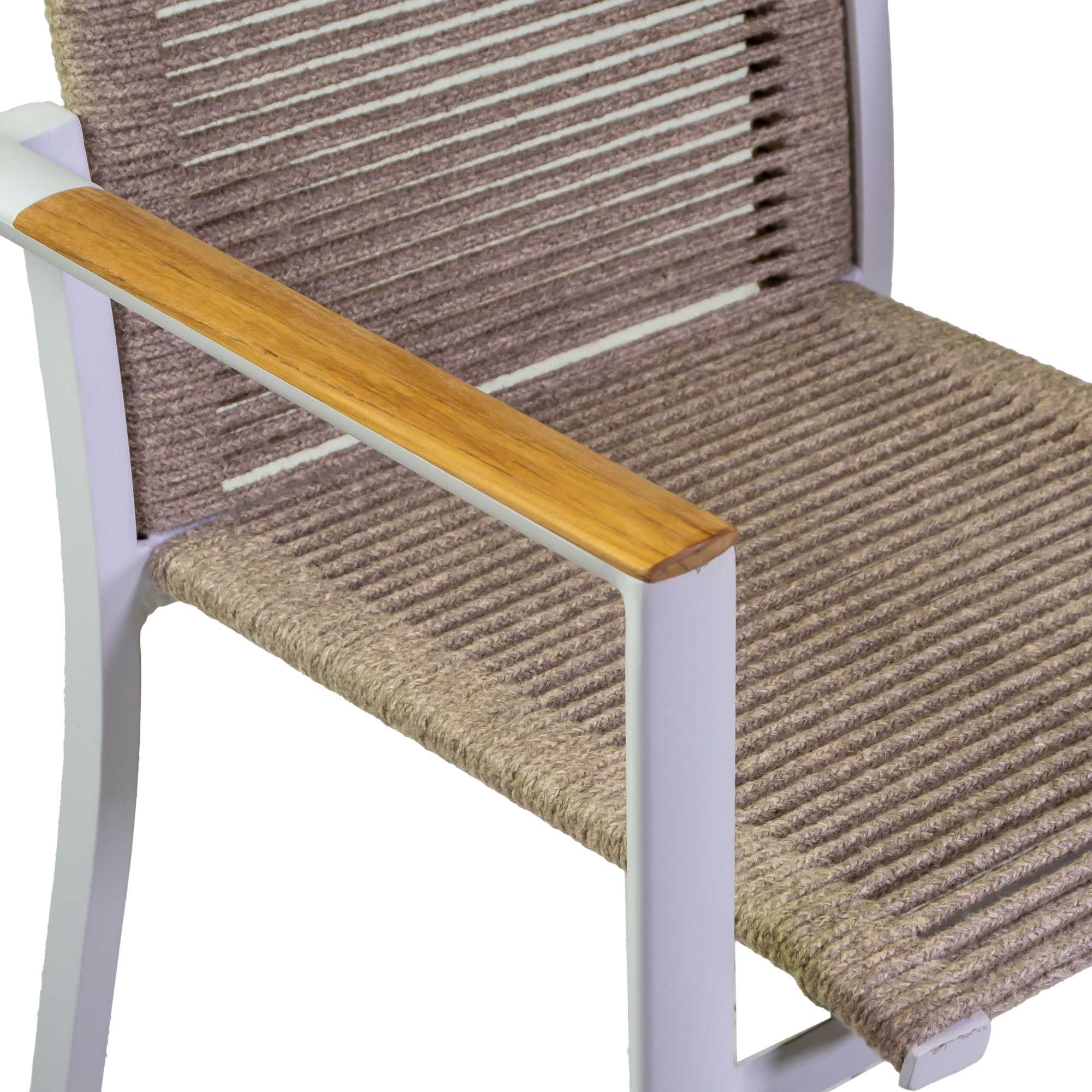 Poltrona alluminio Coronado bianco con corda e teak cm56,2×60,1h87,5n
