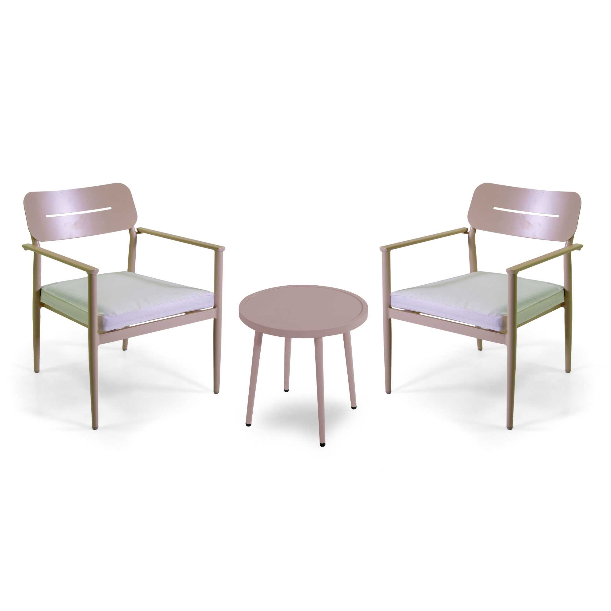 Poltrona alluminio Ibiza 2pz con tavolino tondo beigenn