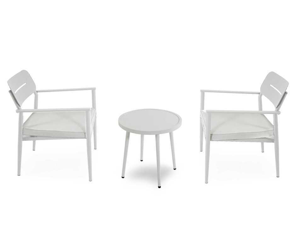 Poltrona alluminio Ibiza 2pz con tavolino tondo bianconn