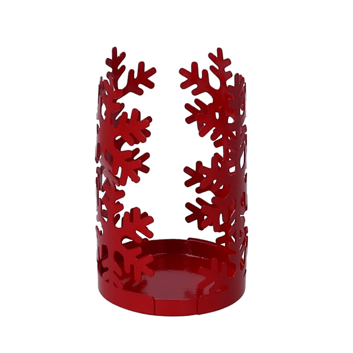 Portabicchiere metallo fiocco neve rosso tondo cm ø8h20