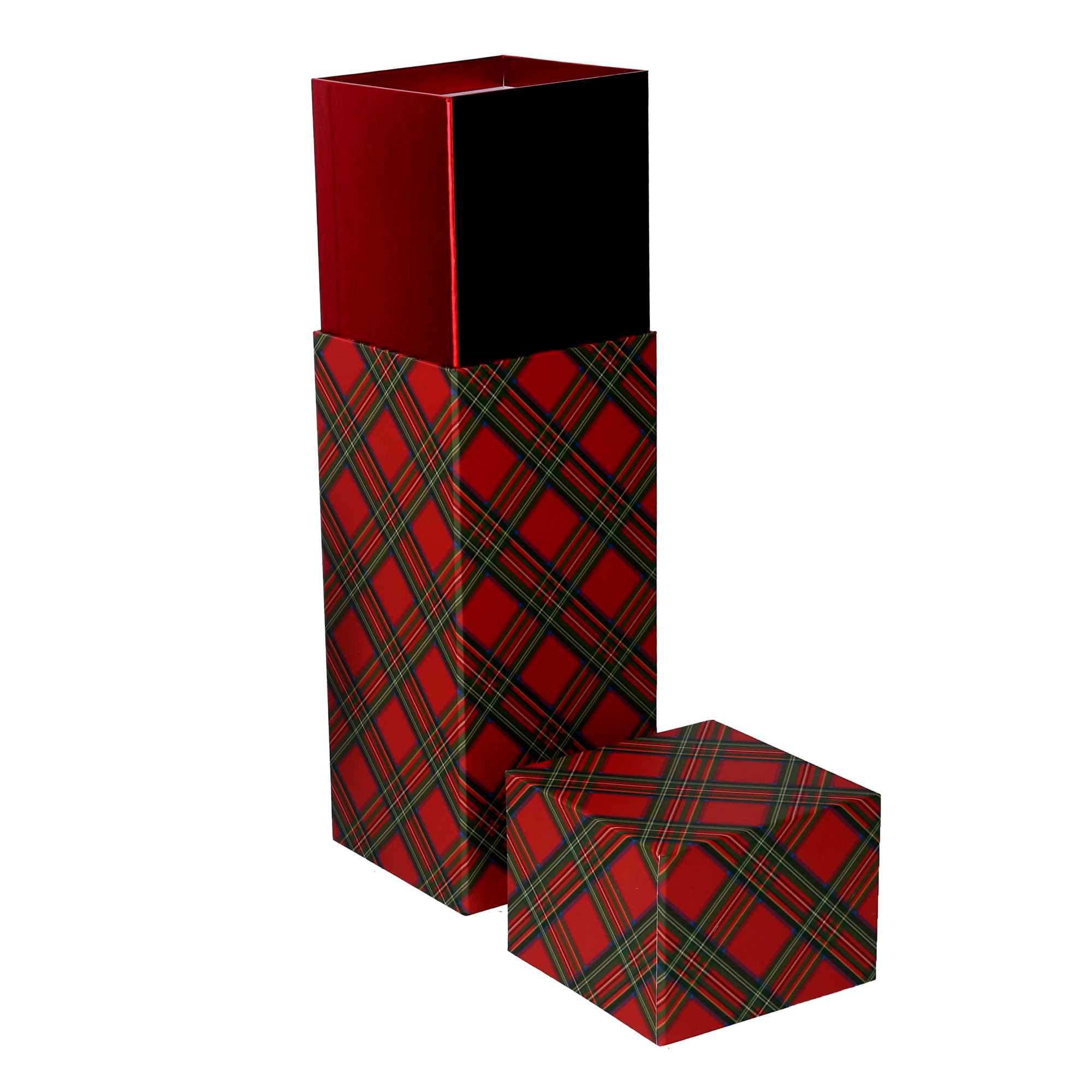 Portabottiglie cartone rosso scozzese quadro cm10x10h32,5