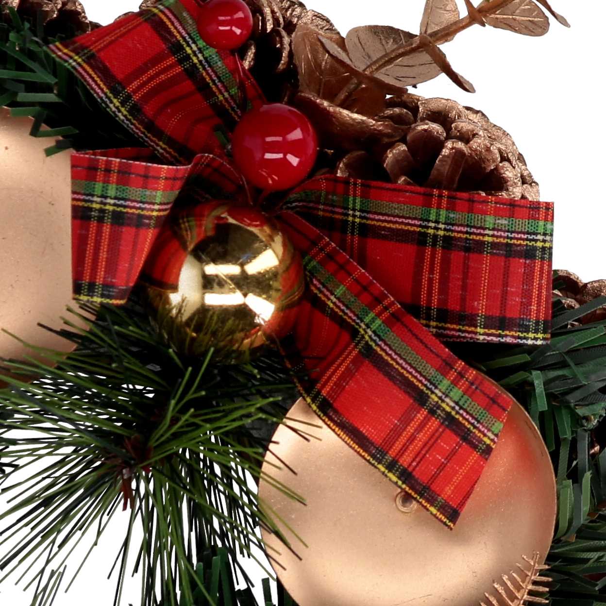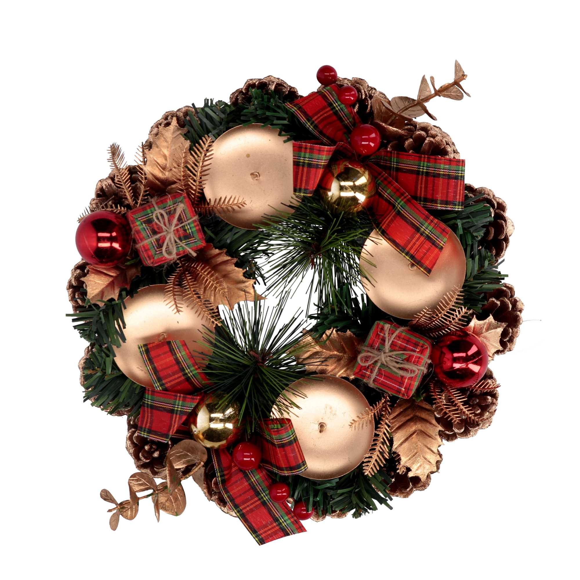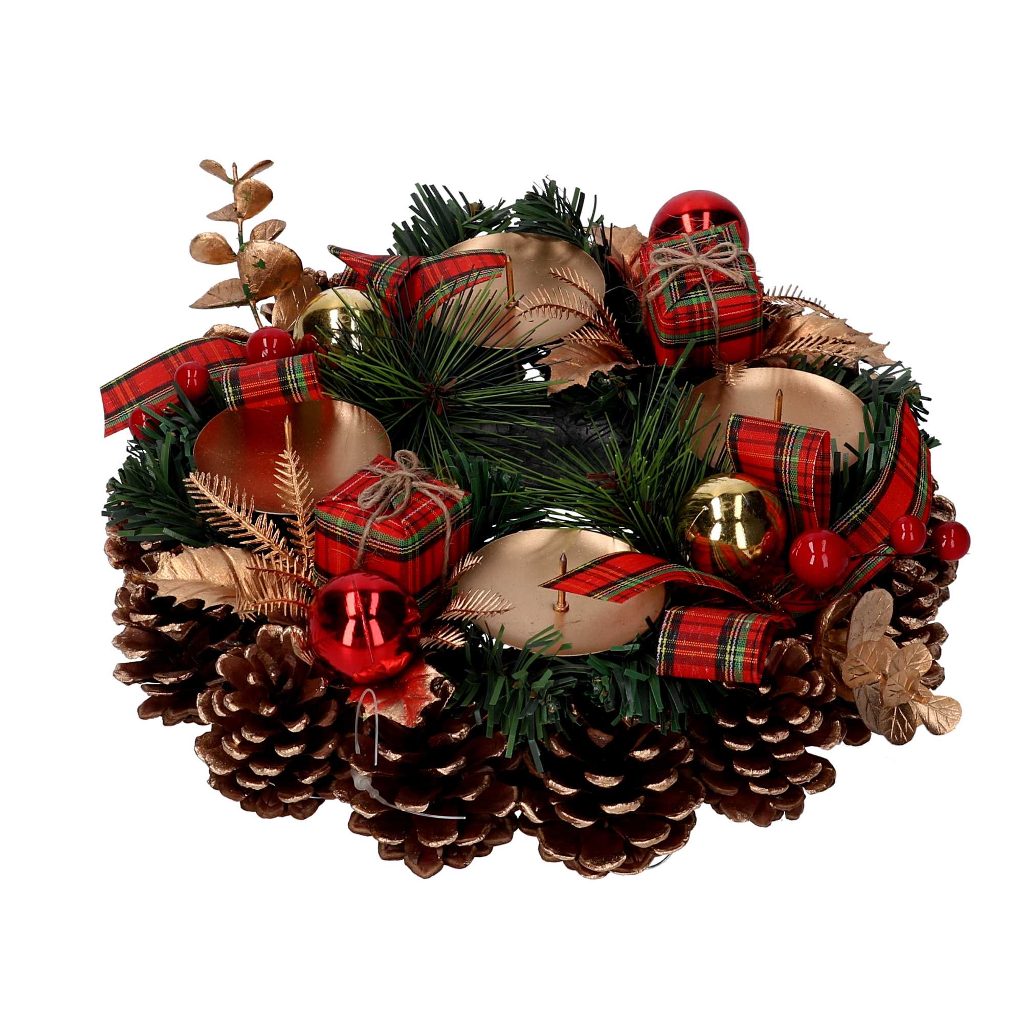Portacandele con pigne rosso scozzese tondo cm ø22n