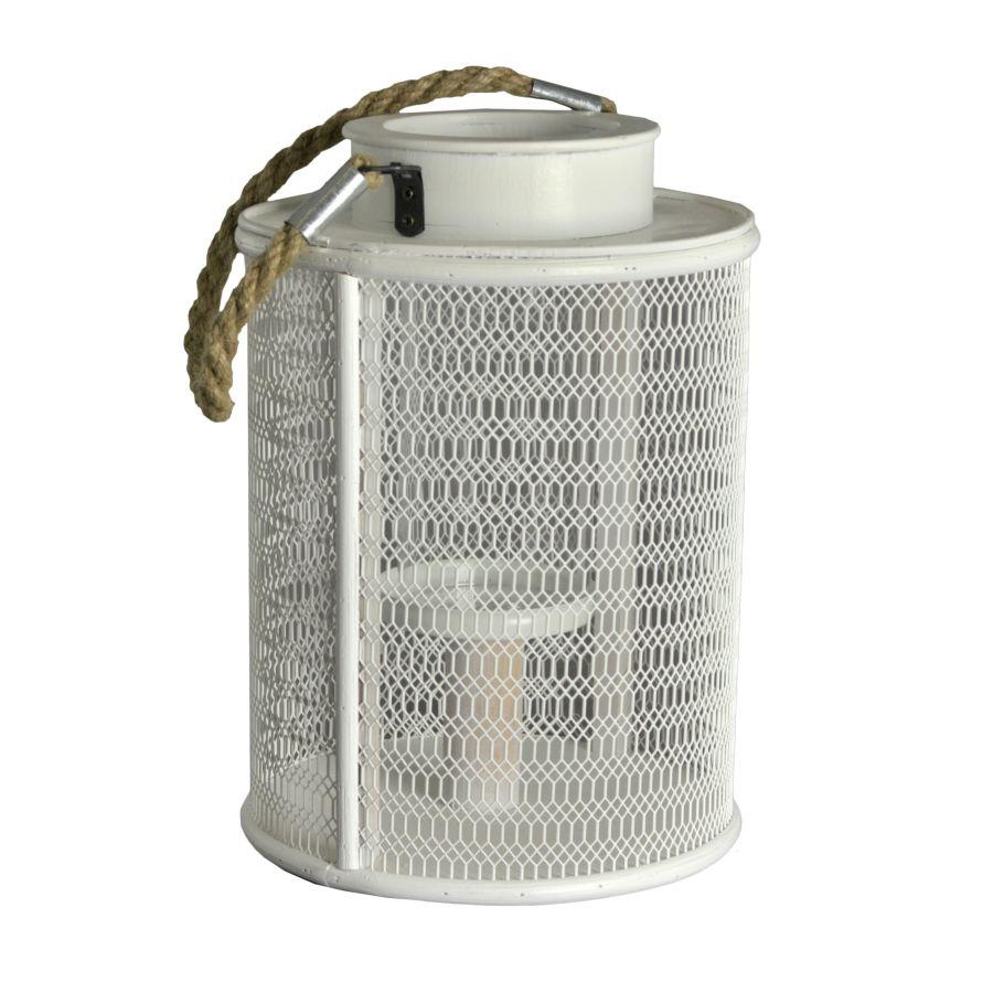 Portacandele legno bianco c/manico corda grande cm15,5×15,5h23