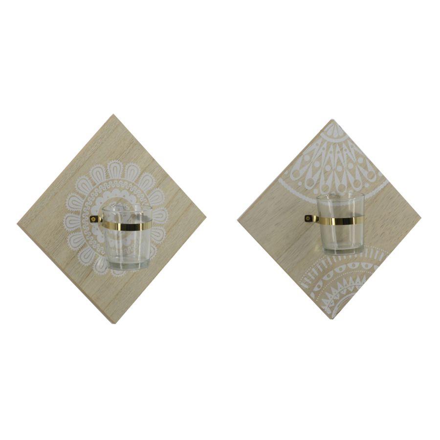 Portacandele legno mandala 2 assortiti cm16,5×16,5×6,5