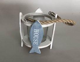 Portacandele legno pesce azzurro cm ø11,5h15