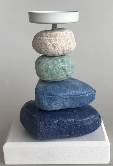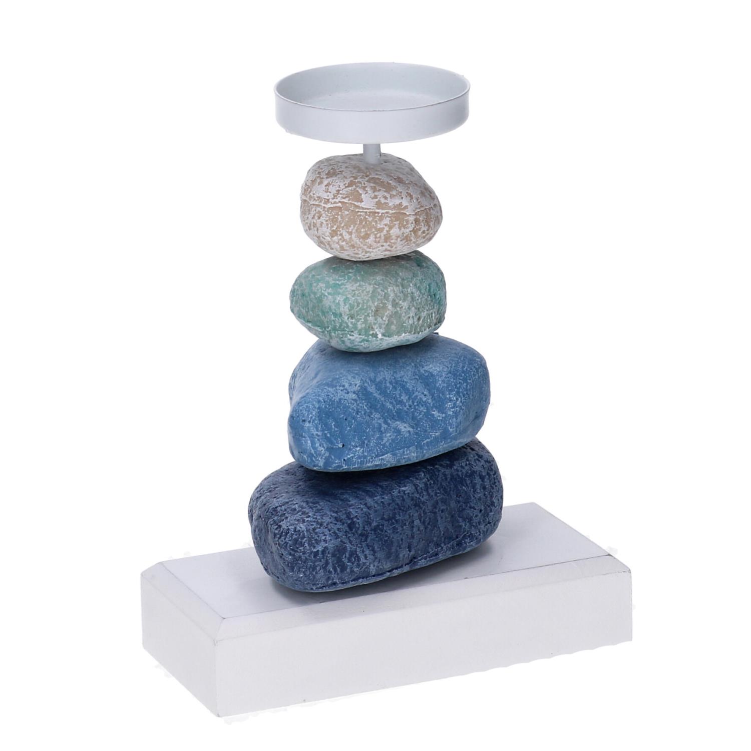 Portacandele legno pietre azzurro cm12x5,5h15,5