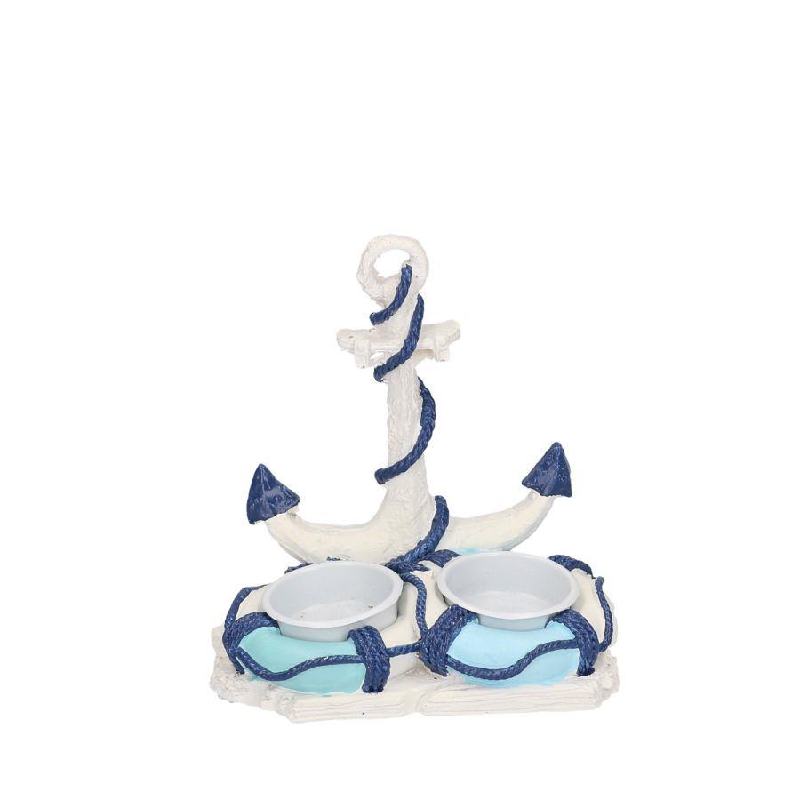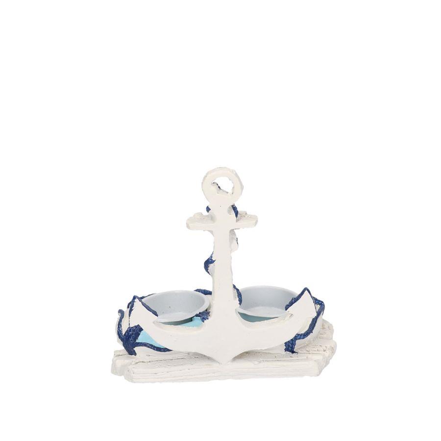 Portacandele mare resina bianco azzurroancora 2p cm13x9h13