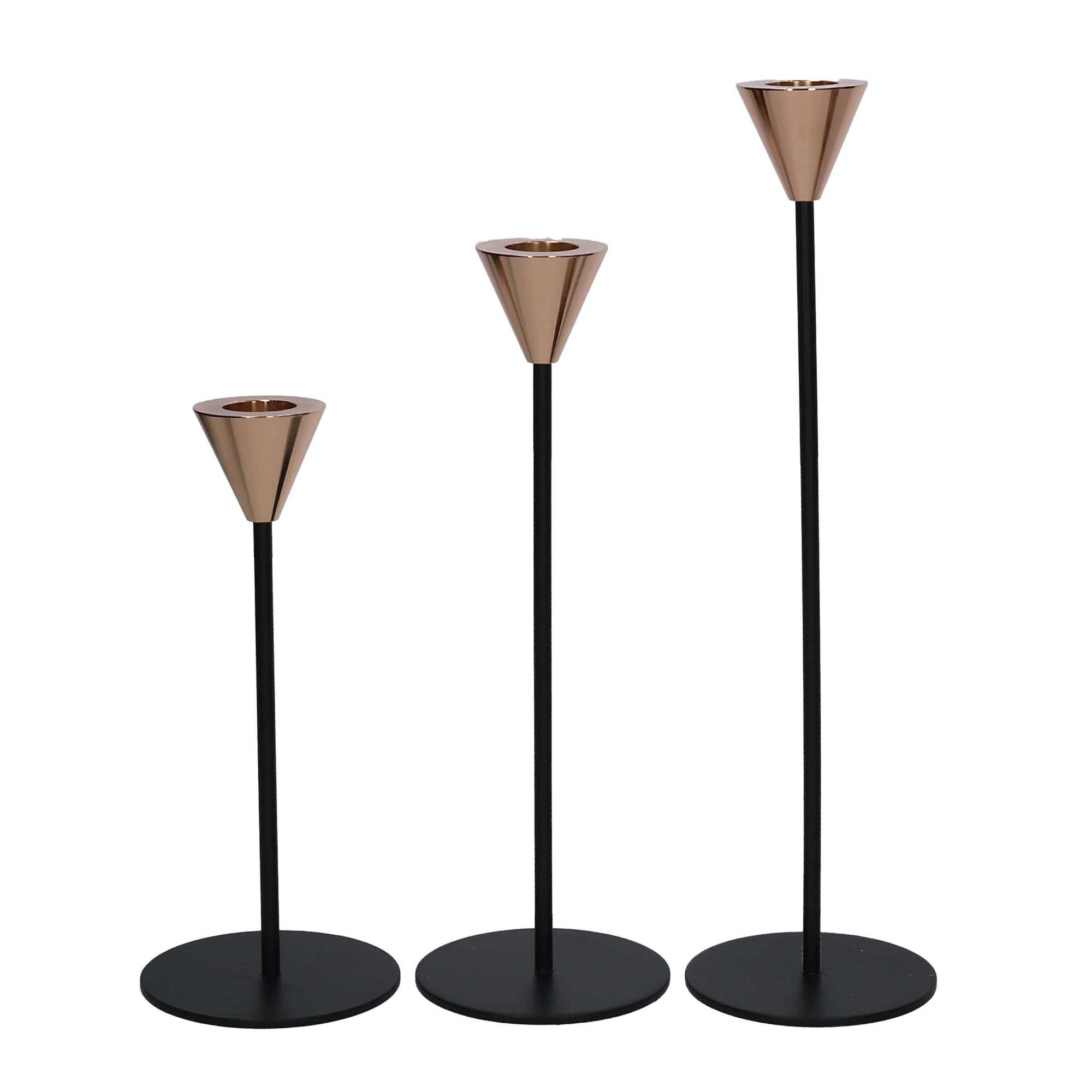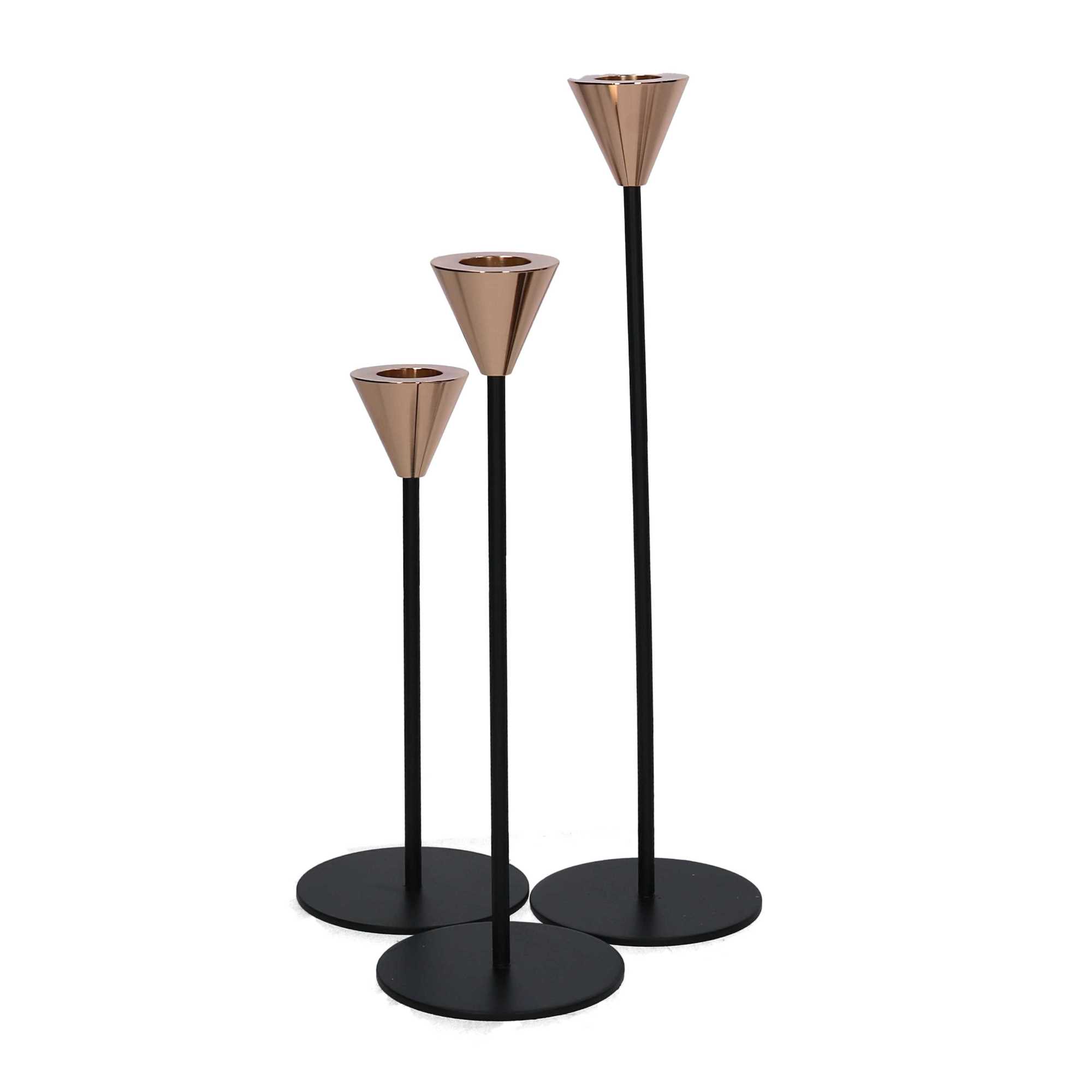 Portacandele metallo 1-3 nero oro cm ø8h28