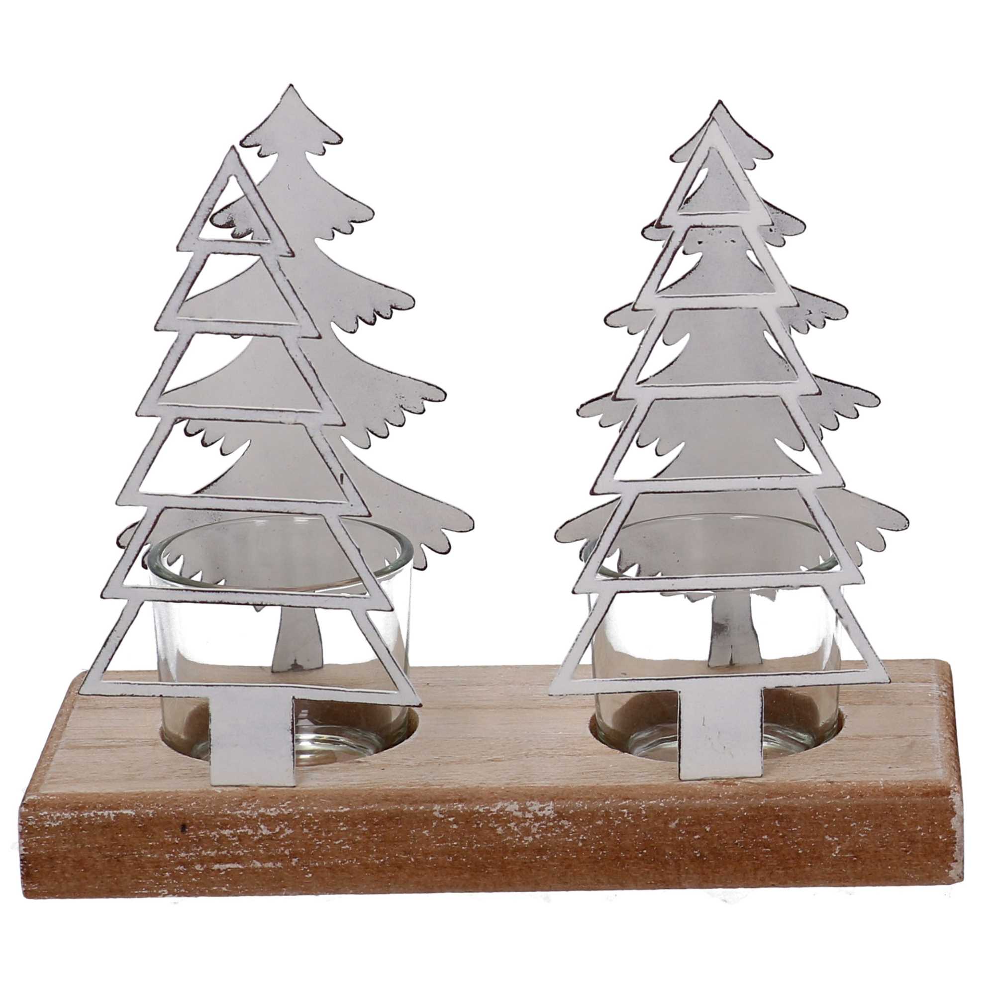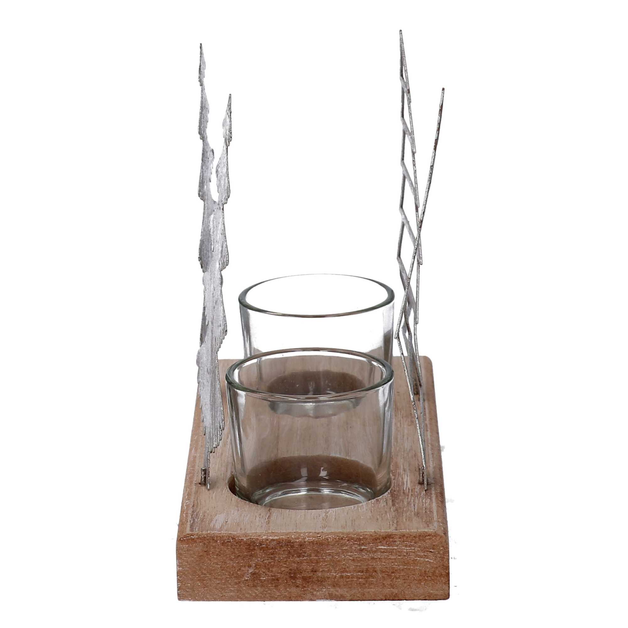 Portacandele metallo 2 posti alberi bianco cm18x8h15