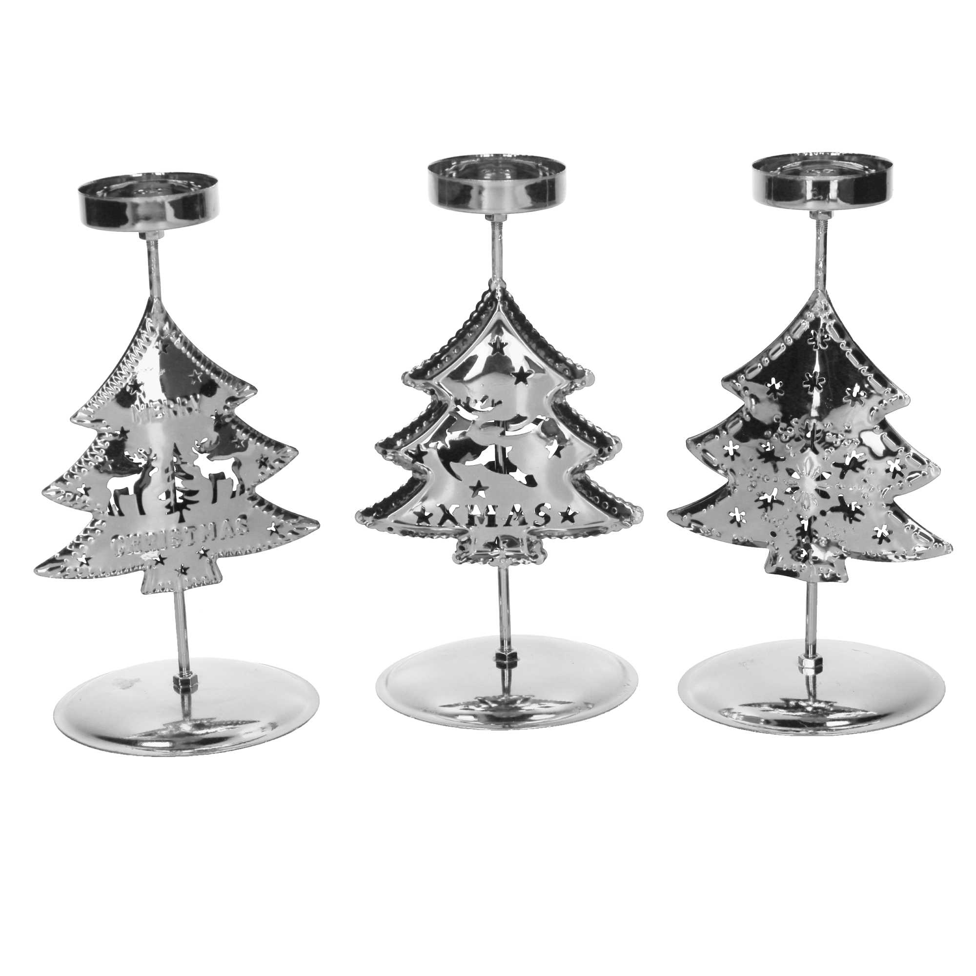 Portacandele metallo albero argento 3 assortiti cm9,2x8h17