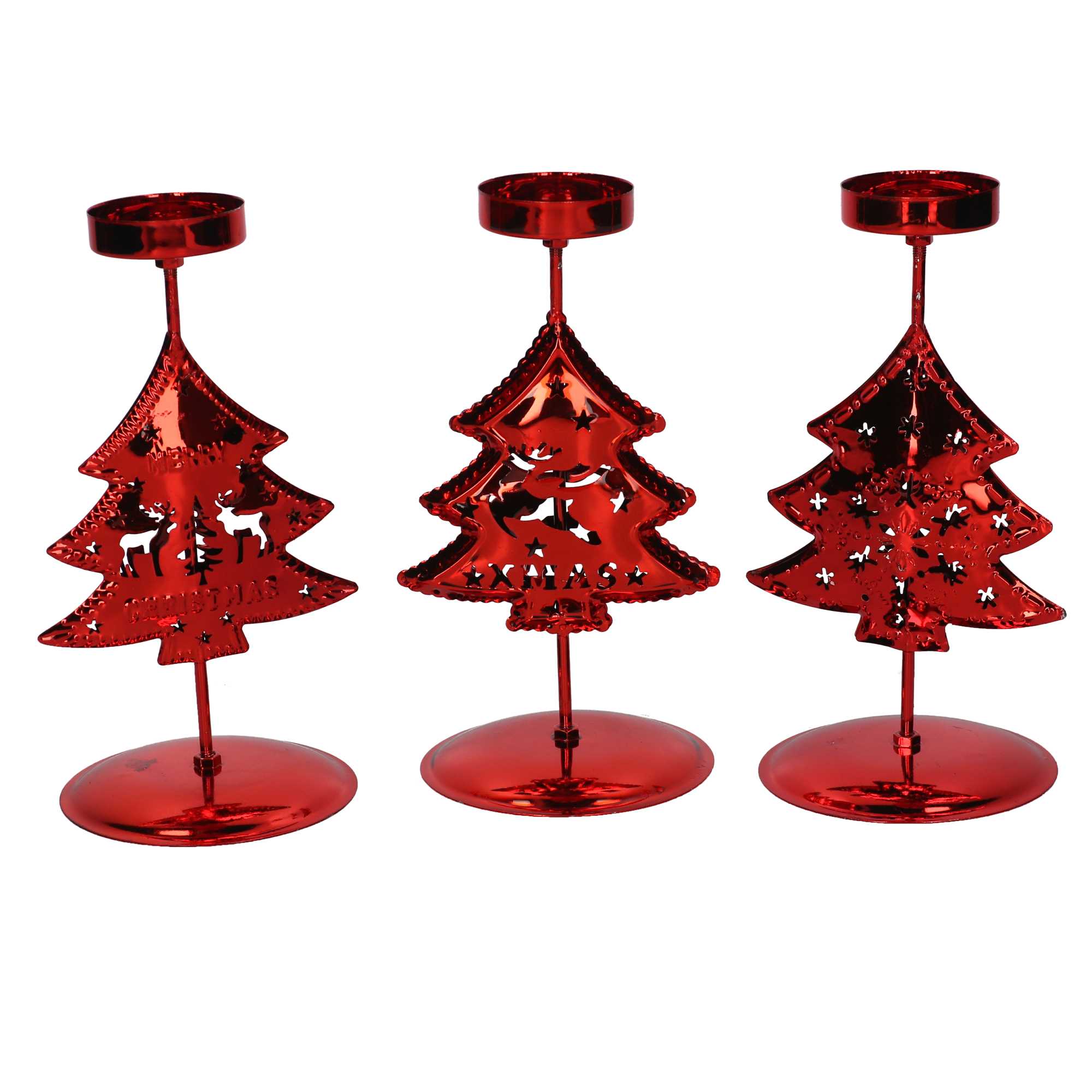 Portacandele metallo albero rosso 3 assortiti cm9,2x8h17