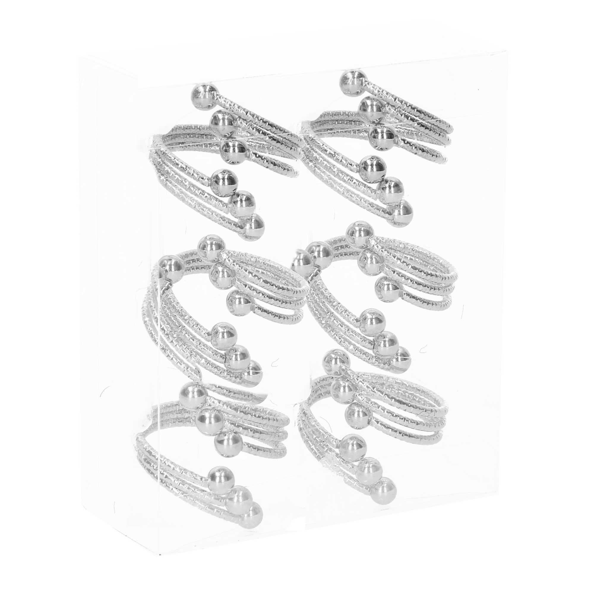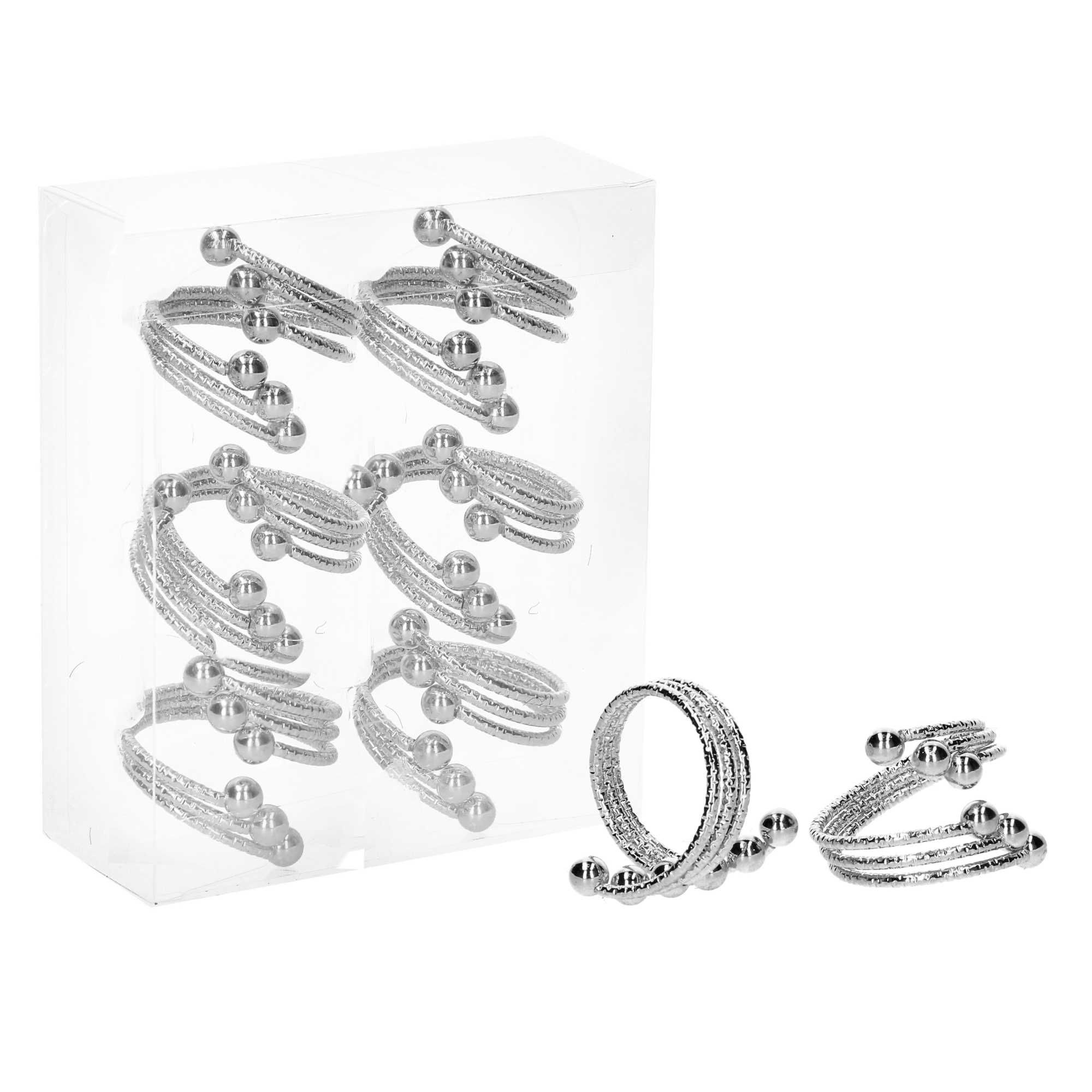 Portatovaglioli in metallo confezione da 6 pezzi colore argento. Diametro singolo portatovagliolo: 4cm. Perfetti per decorare la tua tavola con stile e eleganza. Ideali per occasioni speciali e per regalare. Acquista ora e aggiungi un tocco di classe alla tua casa!