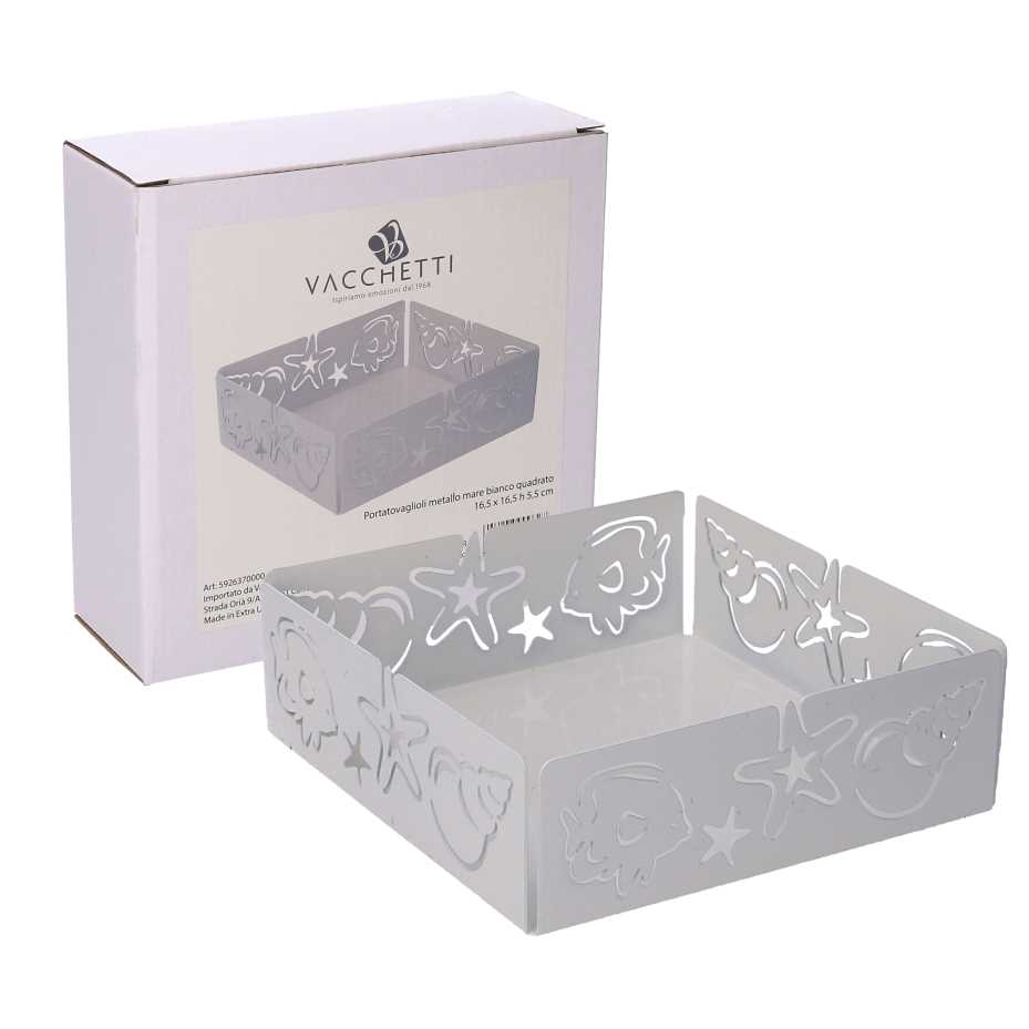 Portatovaglioli metallo mare bianco quadrato cm16,5×16,5×5,5