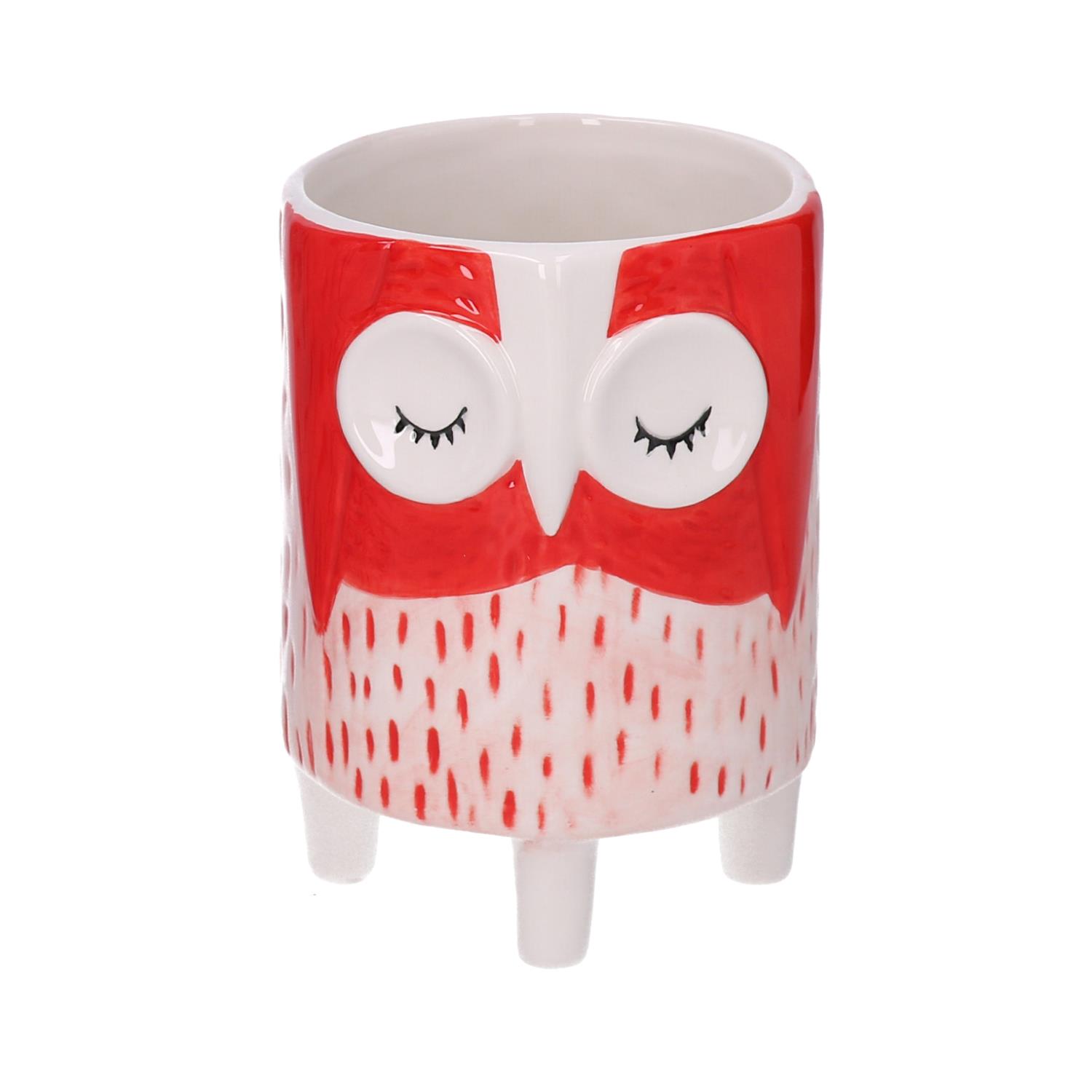 Portavaso ceramica gufo rosso cm ø11,3h15,5