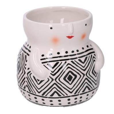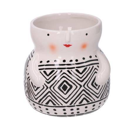 Portavaso ceramica viso bianco decori neri cm ø12,5h12,7