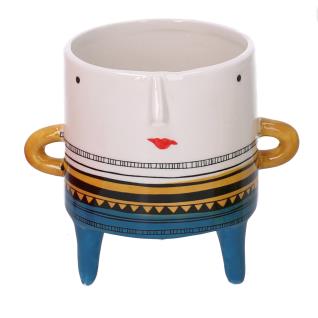Portavaso ceramica viso bianco e azzurro cm ø8,6h9,8