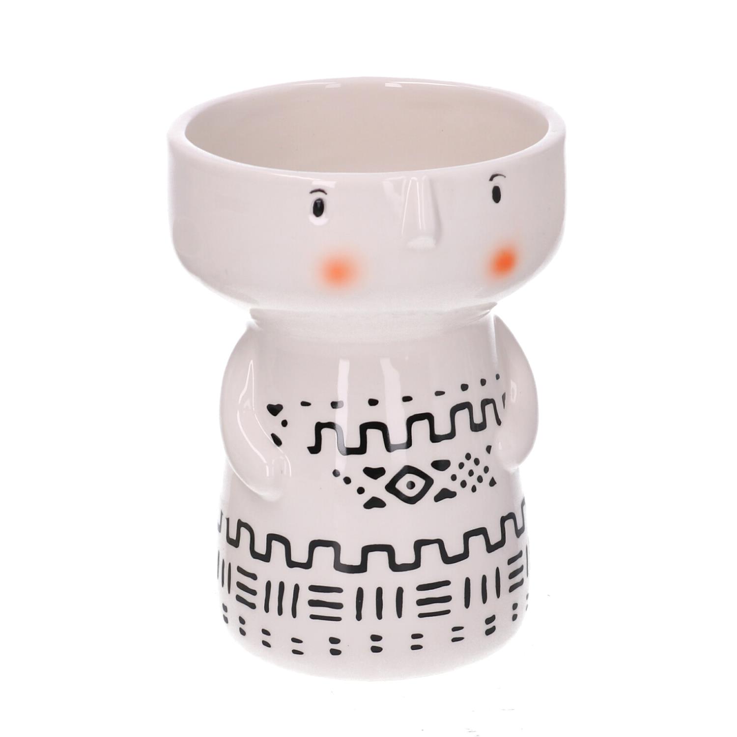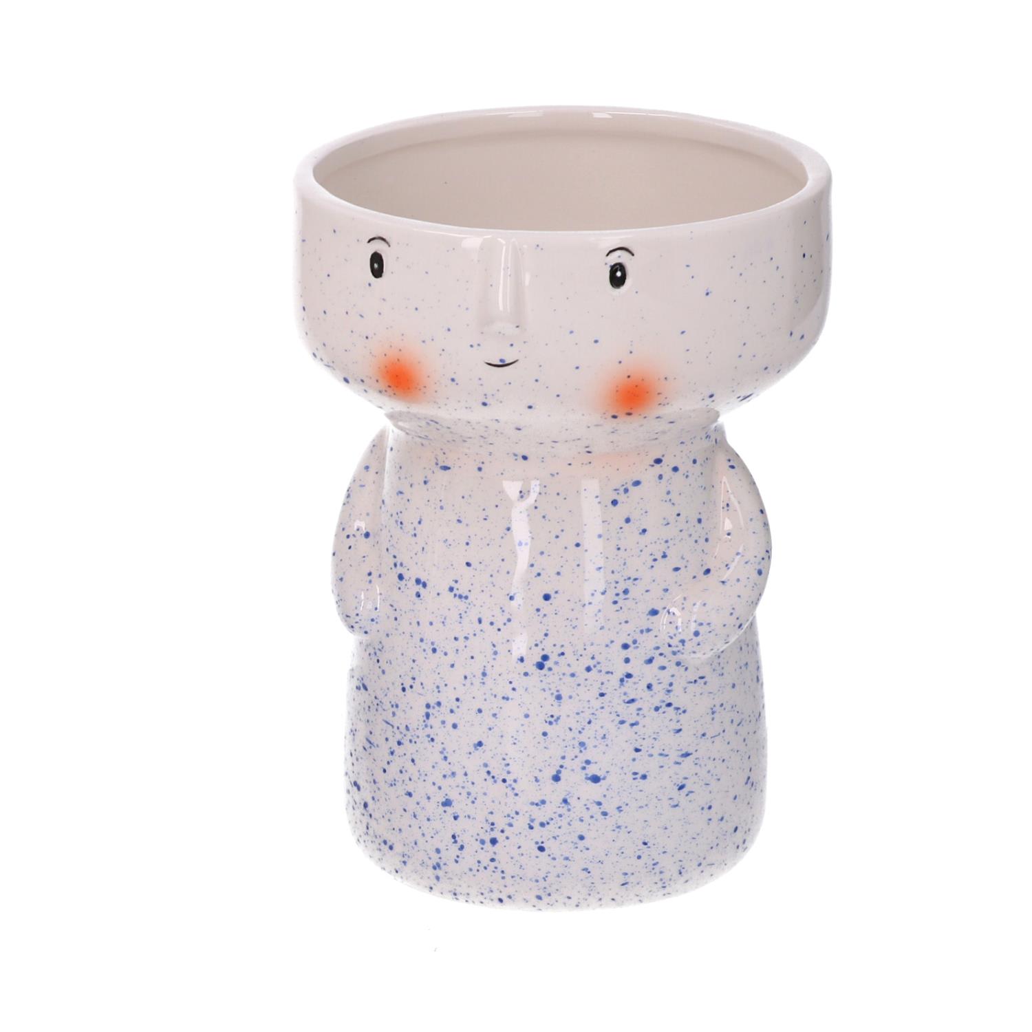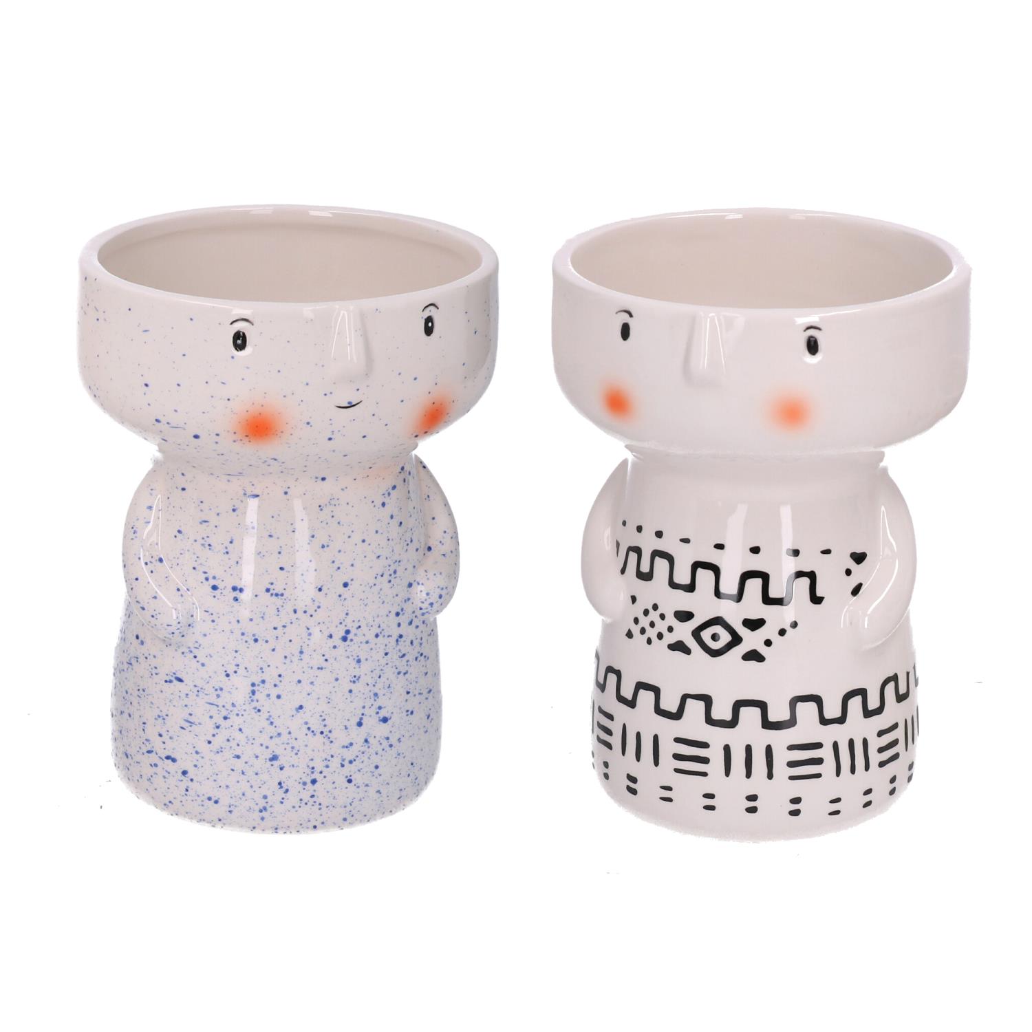 Portavaso ceramica viso decori blu e neri 2 assortiti cm ø11h14