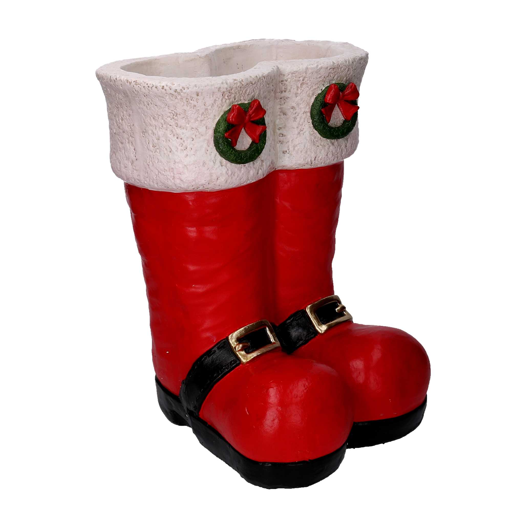Portavaso resina stivali rosso e biancocm31,5x31h41