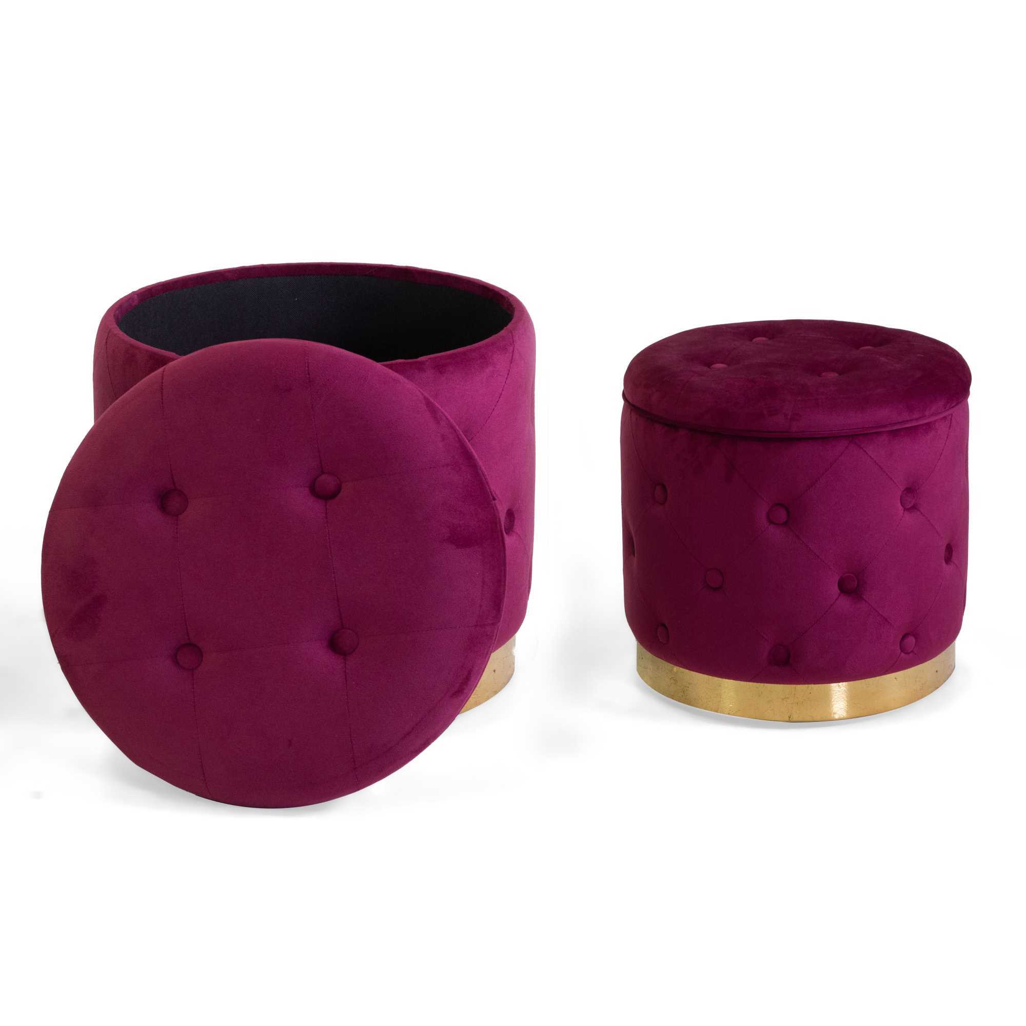 Puff contenitore velluto 1^ rosso tondo cm ø36,5h37